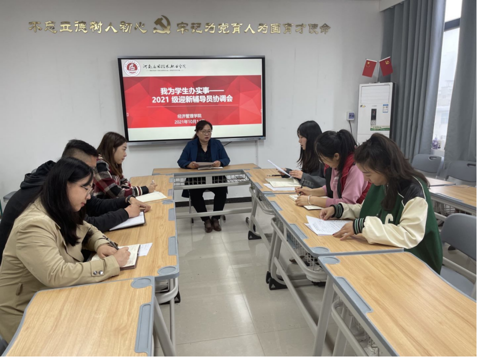 10月14日下午,精选反差婊女神在线在办公楼505召开2021级迎新辅导员协调会。精选反差婊女神在线全体新生辅导员参加会议,会议由团支书书记聂蕴主持。