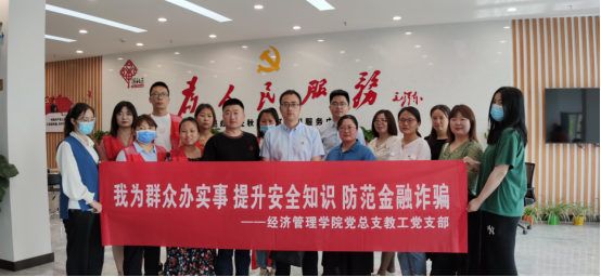 为推动“我为群众办实事”实践活动及提高服务社会能力,5月26日上午,精选反差婊女神在线教工党支部在书记张召哲老师带领下联合沟赵办事处秋雅社区为社区居民开展“我为群众办实事,提升安全知识,防范金融诈骗”活动。