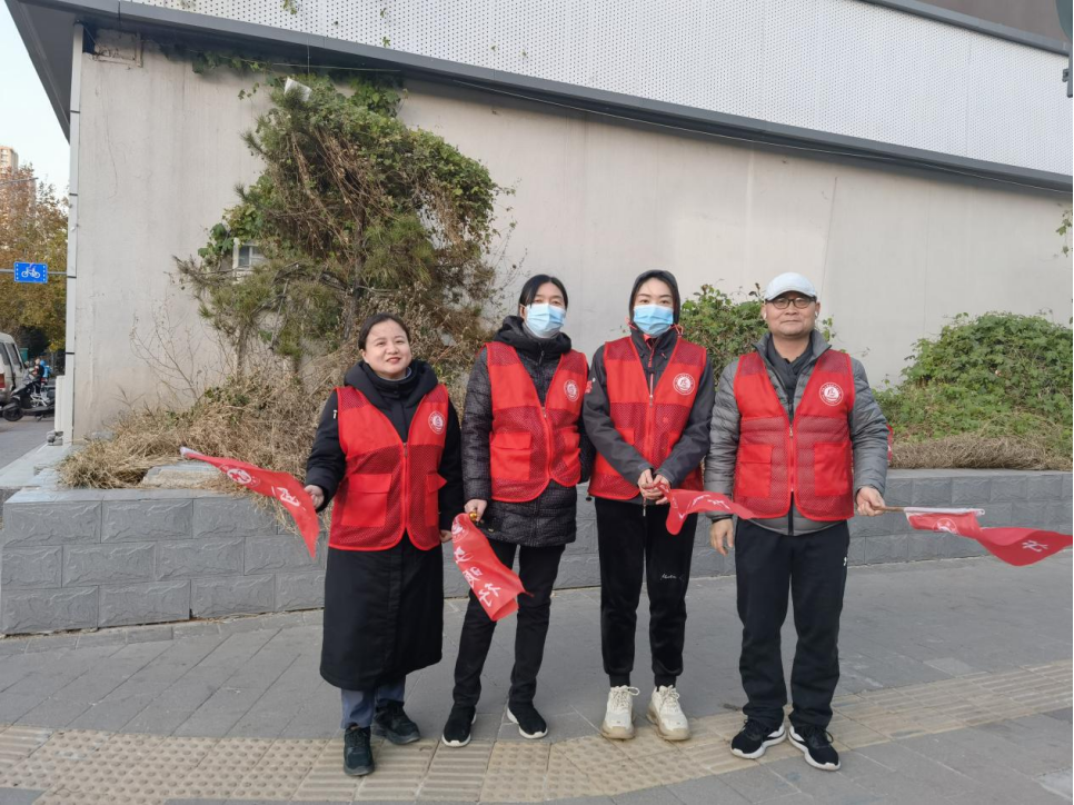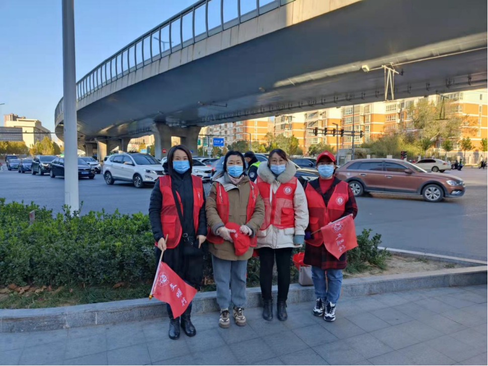 在活动中,志愿者在指定路口,拿小红旗站岗,劝导群众不闯红灯,不乱穿马路;对非机动车闯红灯,占用斑马线等不文明行为及时上前劝阻,并告知其不文明行为所带来的危害。