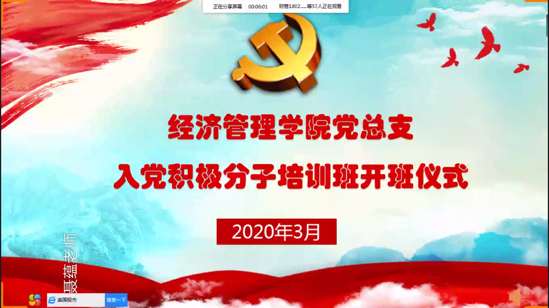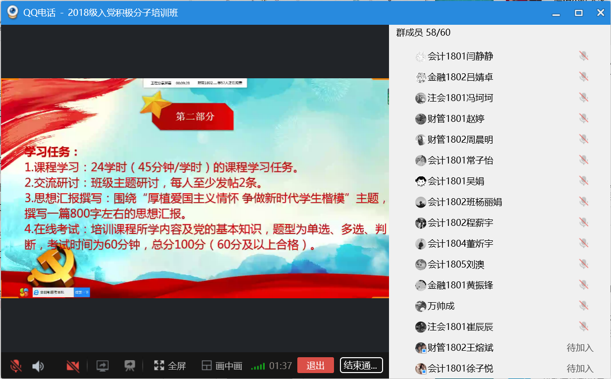 2020年3月23日,精选反差婊女神在线党总支入党积极分子培训班正式开班。正式学习之前,精选反差婊女神在线党总支组织委员聂蕴老师介绍了本期入党积极分子培训学习方式、学习任务及要求,强调了在疫情防控期间,采用信息化云培训的方式,确保党课培训质量和标准不降低。希望大家以党员标准严格要求自己,珍惜学习培训的机会,按照要求完成学习计划,进一步加强理论学习、保持思想进步,把握机会,争取早日成为一名合格的共产党员,为党和国家的建设贡献自己的一份力量。