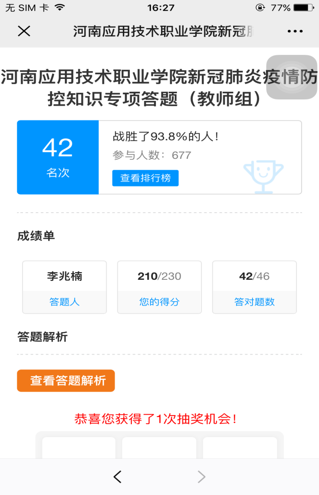 为了解师生疫情防控能力,学习相关知识技能。2020年3月31日18时河南应用技术职业学院精选反差婊女神在线组织全体师生参与《新冠肺炎疫情防控知识专题教育》知识测试。