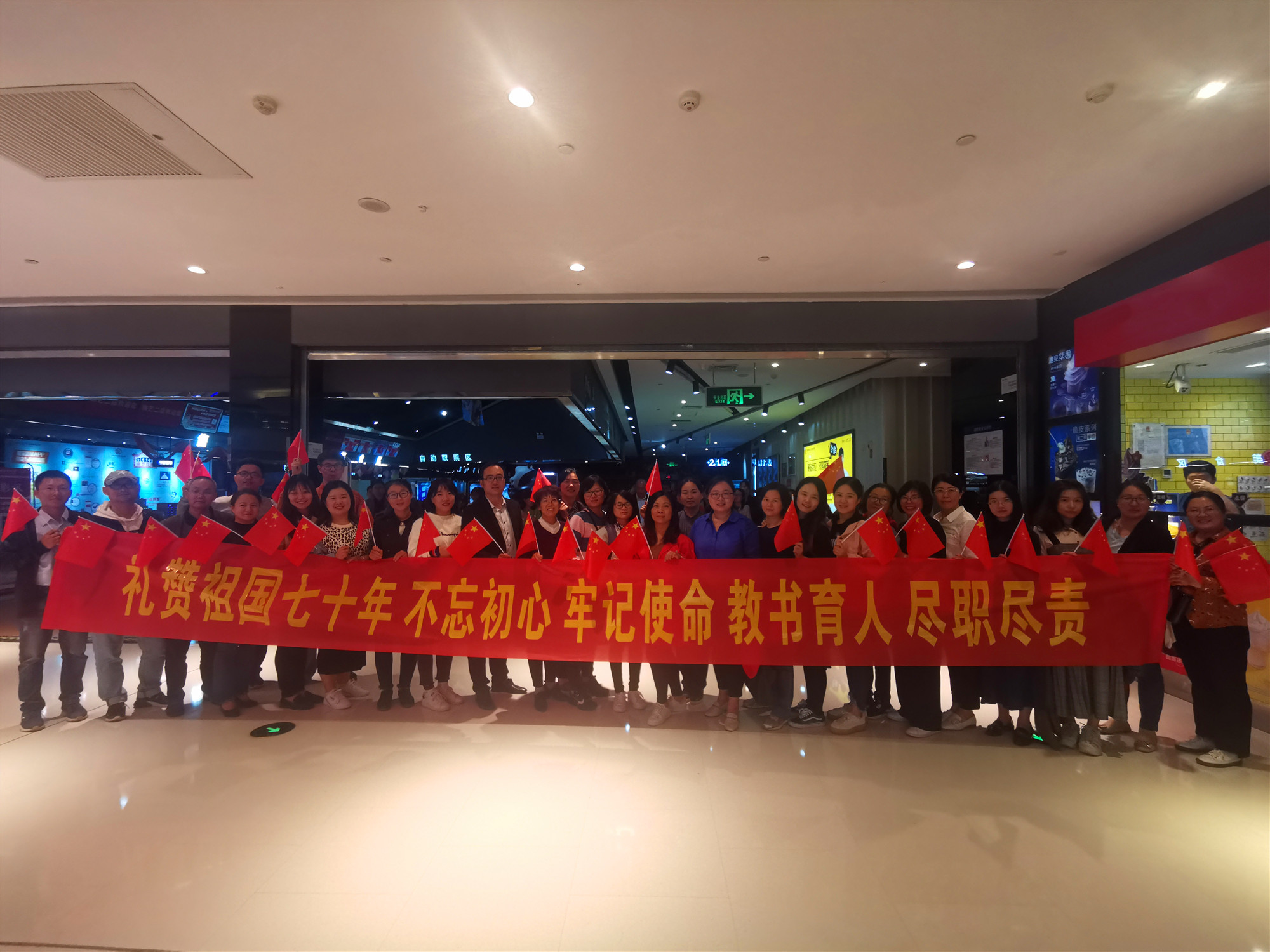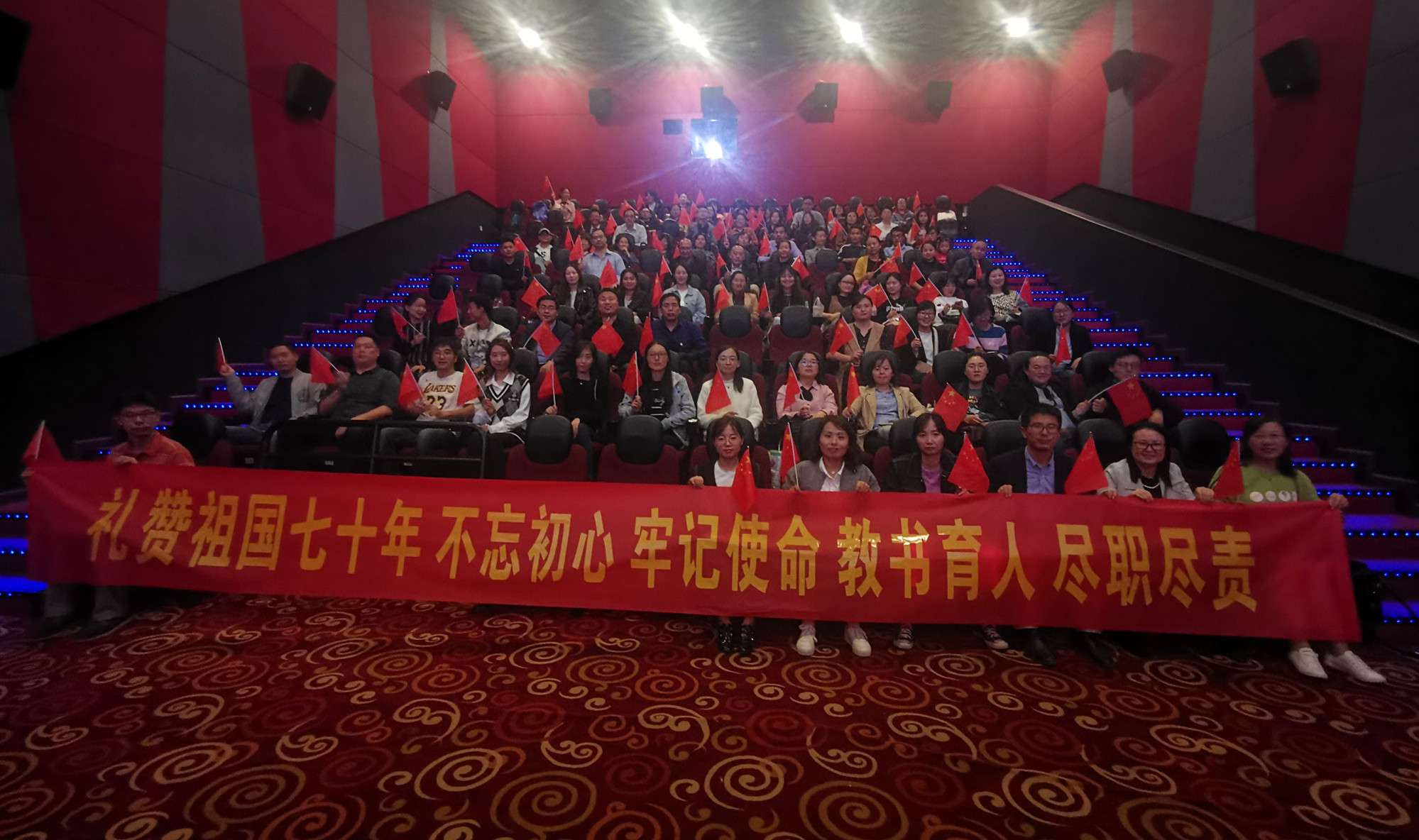 庆祝新中国成立70周年,进一步深化开展“不忘初心、牢记使命”主题教育,充分发挥红色电影资源优势,大力弘扬爱国主义精神,精选反差婊女神在线党总支于2019年10月8日组织全体党员及教师进行了“我和我的祖国”观影主题教育活动。