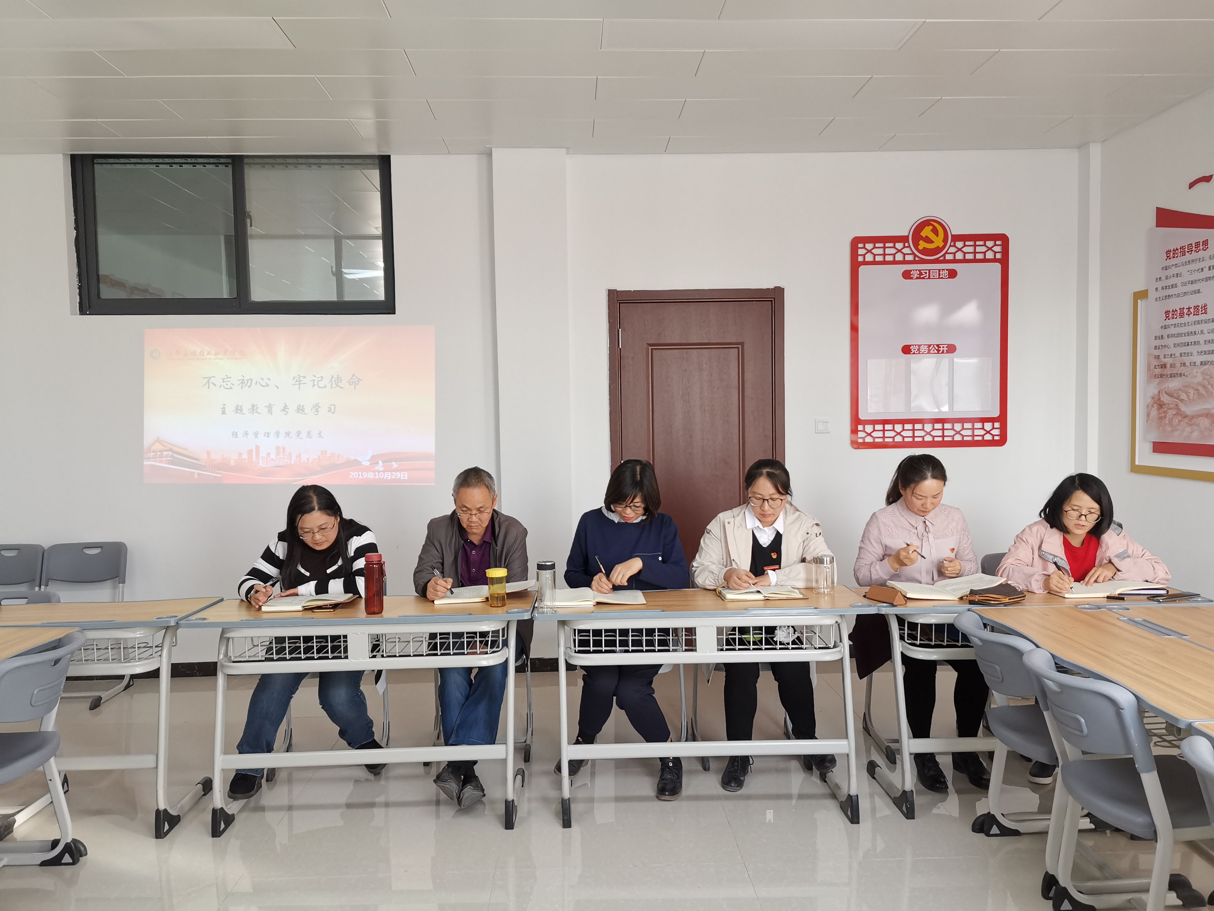2019年10月29日下午,精选反差婊女神在线党总支在办公楼505进行“不忘初心、牢记使命”主题教育第六专题“强化党的政治纪律和政治规矩”和第七专题“加强党性修养”的集中学习研讨,学习由教工支部书记张召哲老师主持,全体党员教师参与本次学习研讨。