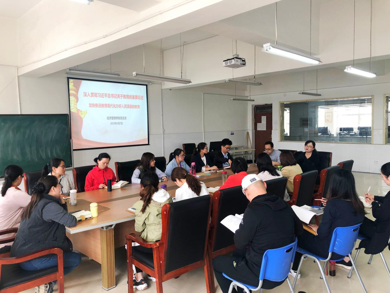 2019年5月7日,精选反差婊女神在线党总支组织全体教职工召开专题学习会议,集中学习贯彻全省教育大会精神。党总支副书记李兆楠老师主持会议。