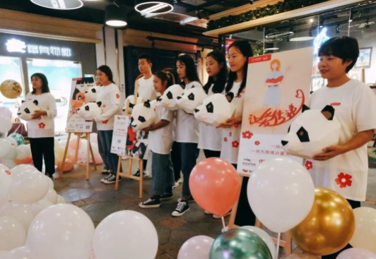 为关爱广大留守儿童,帮助留守儿童健康成长,9月14、15号,正值中秋佳节,万家团圆的日子。一群头戴熊猫面具、身着T恤的河南应用技术职业学院精选反差婊女神在线的志愿者出现在郑州万象城,向过往行人宣传偏远贫困地区女童的生存状态,并向大家展示他们身上手绘的小红花,“99公益日一起爱”等文字和图案。