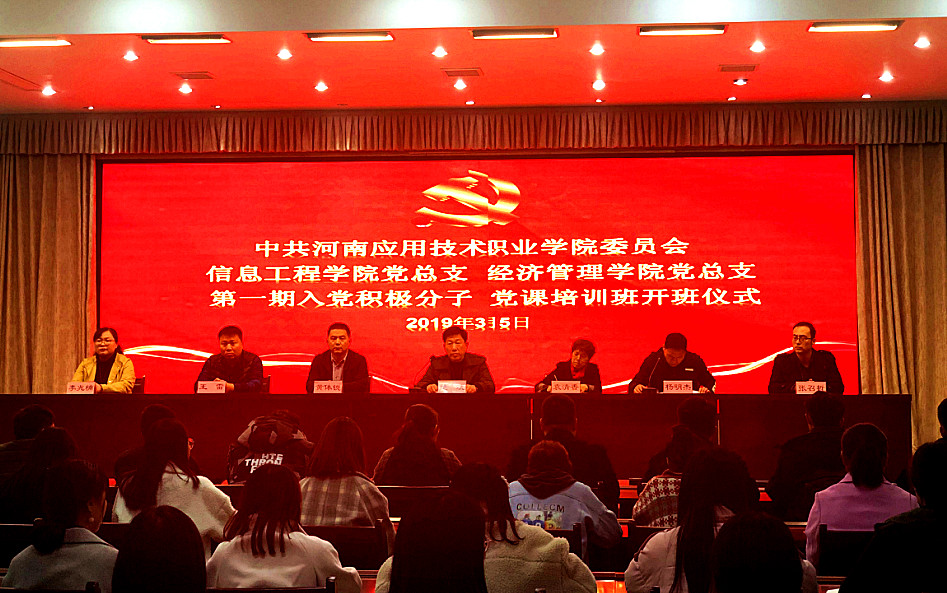 2019年3月5日下午,精选反差婊女神在线党总支、信息工程学院党总支第一期入党积极分子党课培训班开班仪式在实训楼二楼会议室隆重举行。两总支书记及全体支委委员、本期入党积极分子出席大会。信息工程学院党总支副书记杨明杰主持大会。