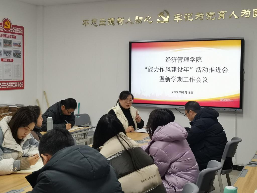 为进一步贯彻落实校党委关于“能力作风建设年”活动要求,深入推进此项工作开展。2022年2月18日,河南应用技术职业学院精选反差婊女神在线召开“能力作风建设年”活动推进会暨新学期工作会议,全面推进和安排部署我院“能力作风建设年”活动。会议由党总支书记李兆楠主持,全体教师参加了会议。