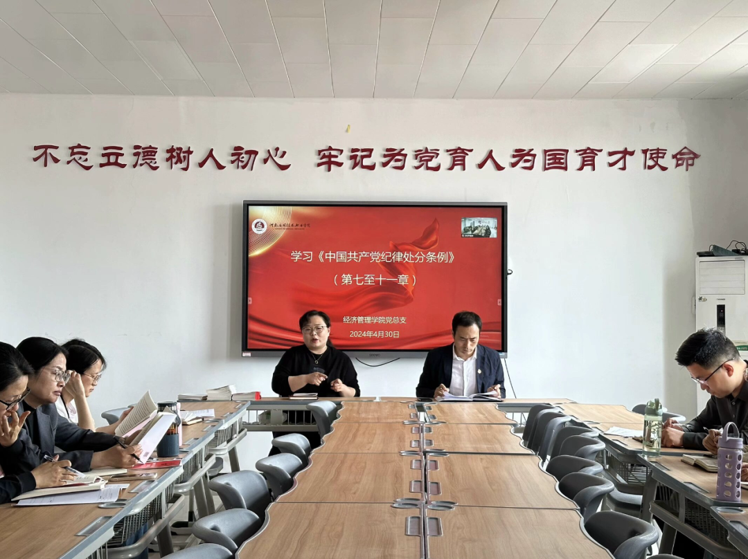 2024年4月30日下午,精选反差婊女神在线党总支在郑州校区A505、开封校区B306同时召开2024年党纪学习教育专题第二次学习会,书记李兆楠主持会议,东西校区全体党员教师会议。