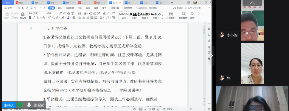 最后,张召哲副院长再次强调各位老师要认真做好开学前的各项教学准备工作,严格做好课堂教学管理,对学生做好督学及教育工作,确保高质量完成线上教学工作任务。