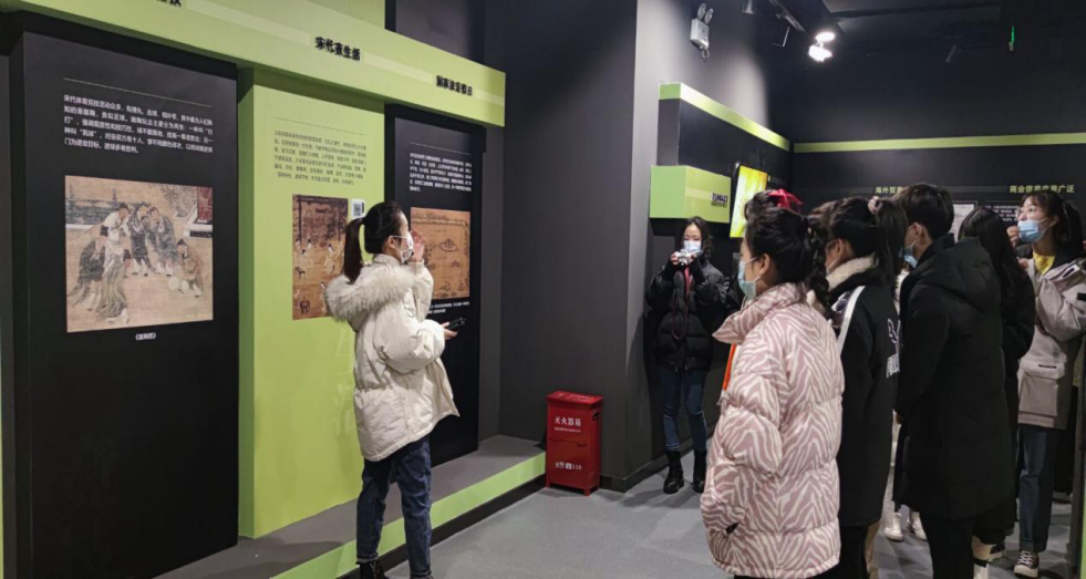 馆内讲解人员详细地介绍金融博物馆的概况:中原金融博物馆于2019年6月29日正式开馆,由郑州市人民政府和中国金融博物馆合作创建。博物馆分为八个展厅,以中国金融史、中原商业金融史、黄河治水与金融、大宋金融、河南商帮、金融的力量、新金融和财富管理为等内容为核心,通过声、光、电、影、物等形式,全面立体地展示中原文明在金融历史发展中产生的重大作用,以及互联网金融环境下郑州金融业的巨大机遇。