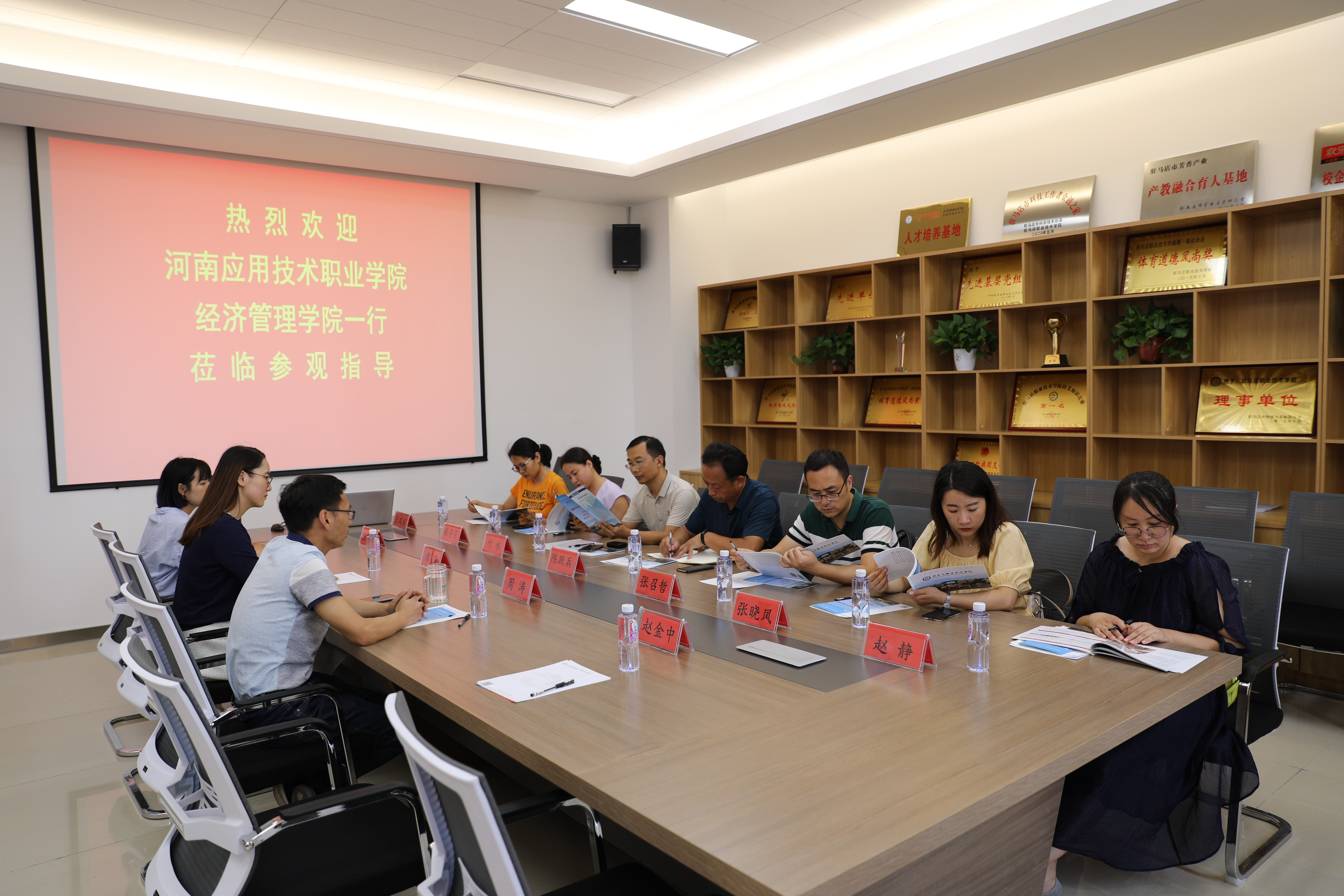 我院院长张召哲介绍了我院学院发展的基本情况,双方在学院建设、学院发展规划、产业学院建设方面交换了意见,期望通过此次考察、学习交流,加快我院产业学院建设的进度。