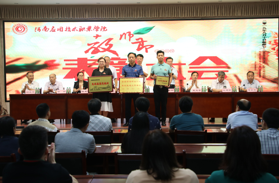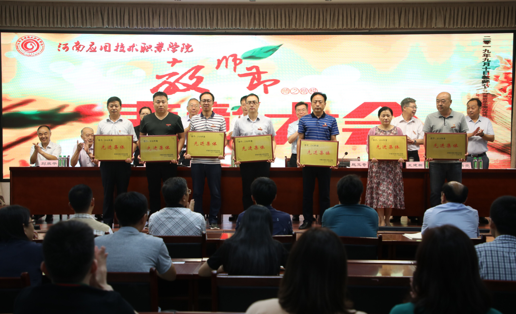 2019年9月10日下午,河南应用技术职业学院2019年教师节表彰大会于实训楼二楼会议室进行。学校党政领导以及全体教职工参加本次大会。大会由朱东方副书记主持。