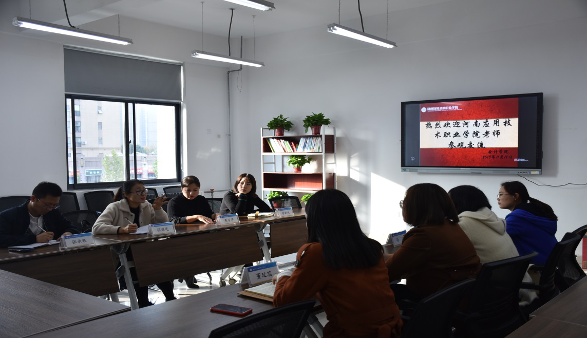 为了加强我校会计技能竞赛团队建设,提升我校在河南省职业院校会计技能竞赛中的水平,本着学习先进、问道取经的原则,2019年11月12日下午,我校精选反差婊女神在线会计教研室主任张梨花率领教师柴芳芳、张晓凤、张永旺前往郑州财税金融职业学院就“如何有效提高会计技能竞赛水平”进行调研学习,该学院会计技能赛项连续多年荣获河南省一等奖,竞技水平成绩优异、学生综合素质较高。