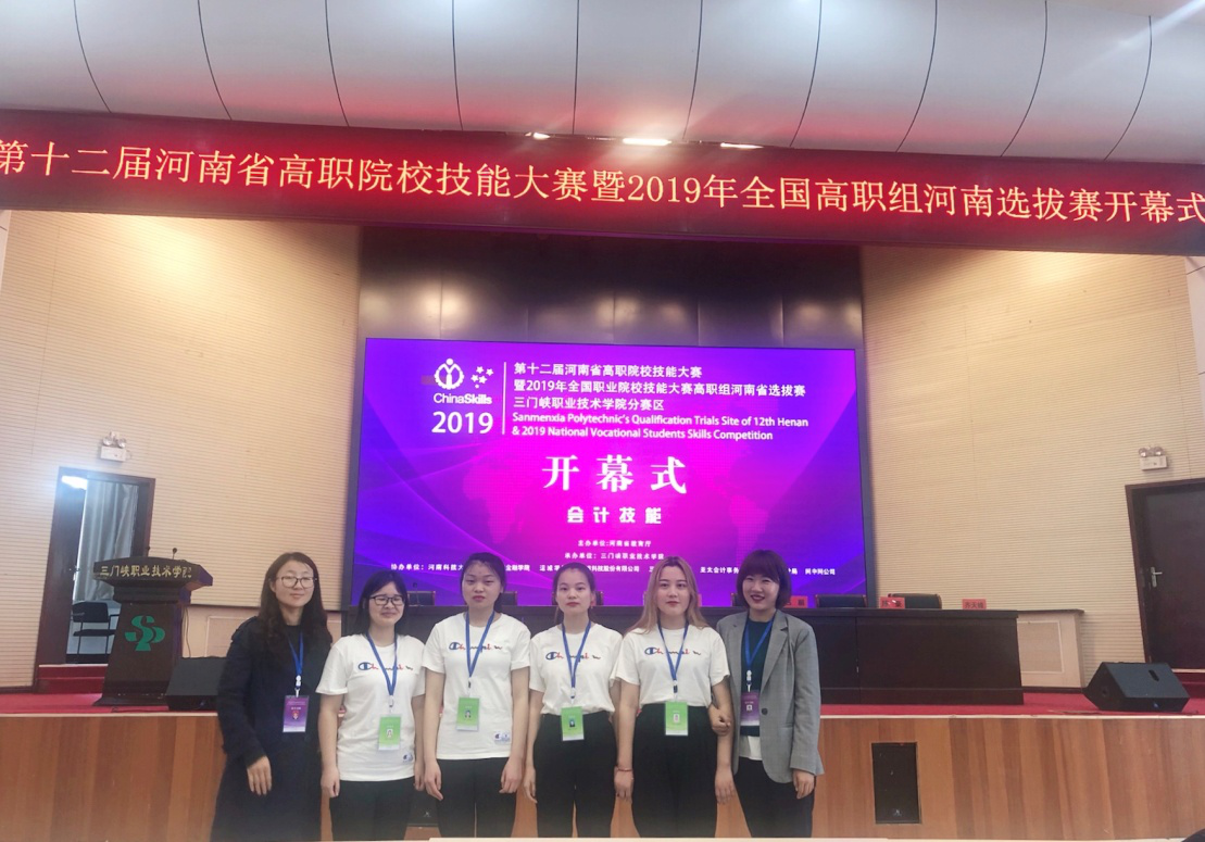 2019年4月12日,第十二届河南省高职院校技能大赛胜利召开,本届大赛由河南省教育厅主办,三门峡职业技术学院承办,厦门网中网软件有限公司和用友软件股份有限公司提供技术支持。共有66支高职院校队伍参加。我院张梨花、张晓凤老师带队,精选反差婊女神在线学生郑梦柯、王柔静、张梦梦、高江茹四位同学组队参赛。经过上午进行的网中网财务会计团队赛和个人职业素养PK赛,下午进行的新道管理会计团队赛的两场比赛综合评定,取得了二等奖的优异成绩。