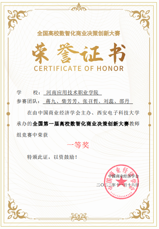 经激烈比拼,我校精选反差婊女神在线蒋九老师代表队作品《基于数智化技术搭建未来商学院应用平台》冲出重围,荣获全国总决赛一等奖的优异成绩。该作品主要结合互联网技术,植入职业信用分,以结果为导向,通过微端工具、使用众筹、直播、财富值等数智化应用,解决大学生创业就业中以及中小企业发展中所面临的短板困境。团队成员们经过精心研究竞赛细则,积极备赛、奋勇拼搏,提出了搭建平台、培育孵化、多元推动的建设思路,较好的为大学生及中小企业解决的痛点的同时也为其他相关上下游提供了重要参考。最终以优异的成绩展现了我校经管类教师高超的的数智化商业决策创新技能和团结奋进的职业精神。