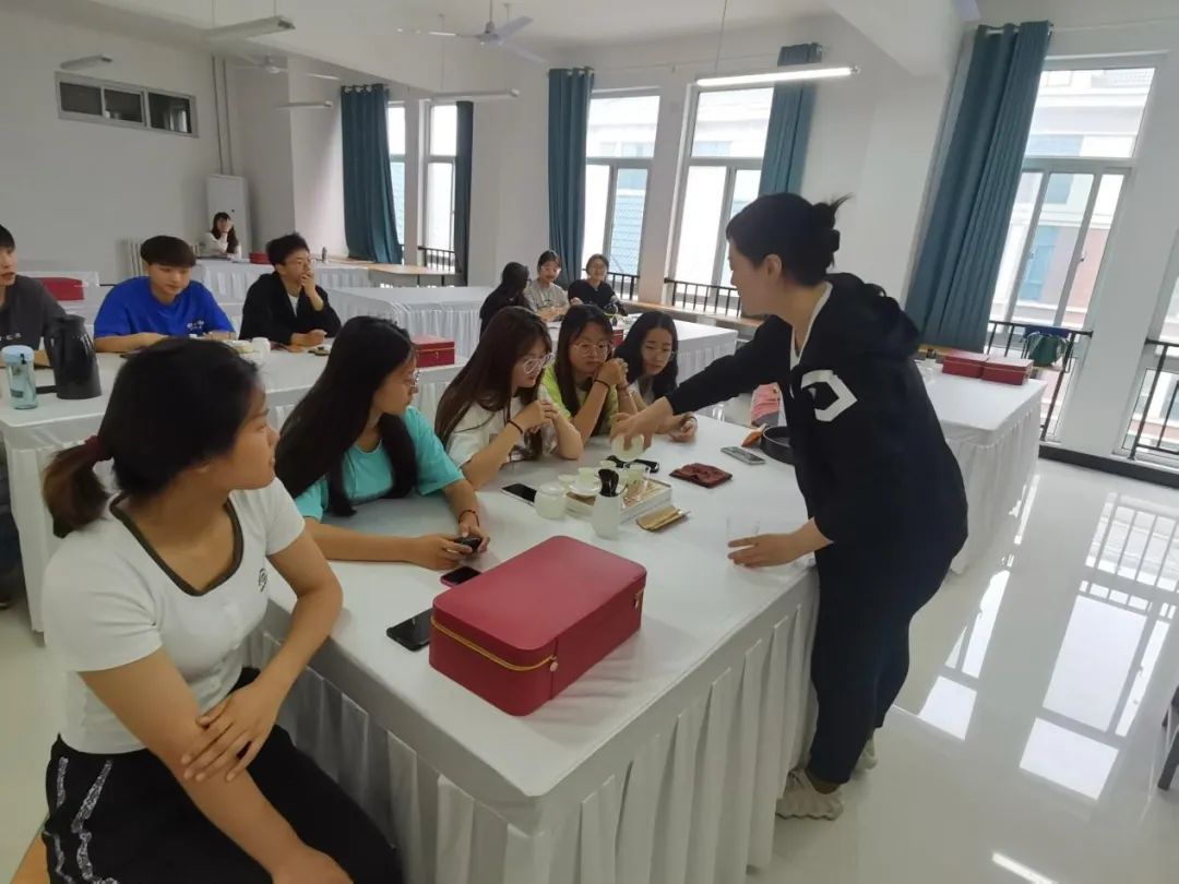 刘青女士是开封市语哲茶文化博物馆高级茶艺师、中国非物质文化遗产“茶百戏”传承人、中国开封市职业技能手、开封市五一劳动奖章获得者。她结合我院酒店管理与数字化运用(高星级酒店方向)的专业特点,积极利用现有资源以及教学实际特点,将茶文化与茶艺融入到酒店经营管理当中,重点讲授了茶叶知识、茶具分类、行茶礼仪等内容,现场演绎了洗杯、投茶、冲茶、醒茶、品茶、回味等一系列茶艺工序,将泡茶的每一道工序进行展现,向学生传递了中国的品茶文化、茶艺精神以及茶道哲学,增强了学生的文化自信。同时,对茶艺技巧的掌握,也丰富了酒店管理专业学生的综合实践能力。茶文化与茶艺课程已经是当前高职院校酒店管理专业人才培养的必备课程之一,不仅能增强学生自身的专业技能,更能培养出与酒店服务相匹配的人才。