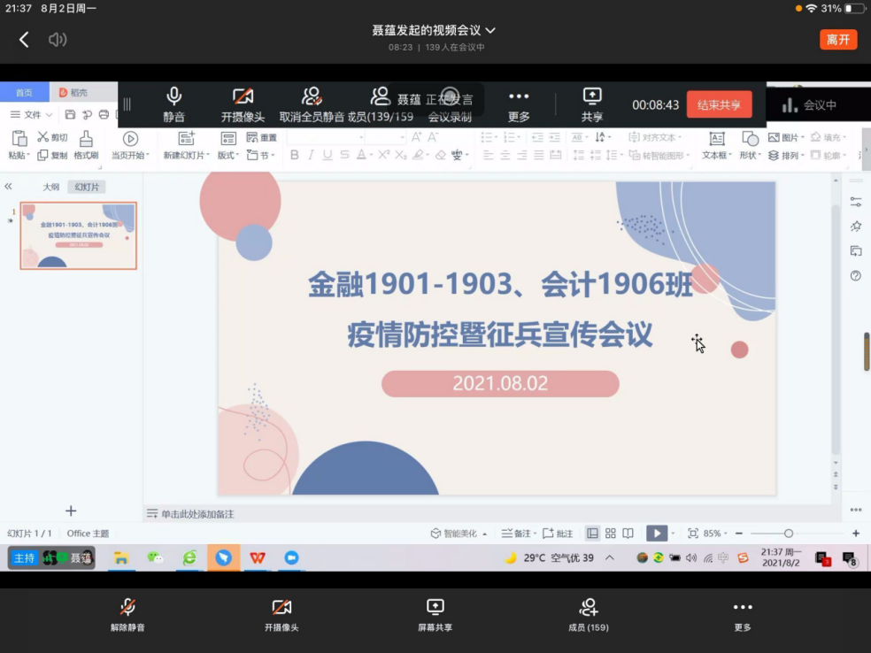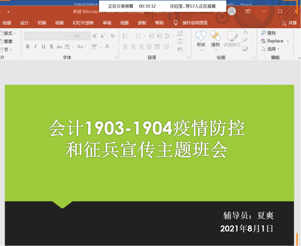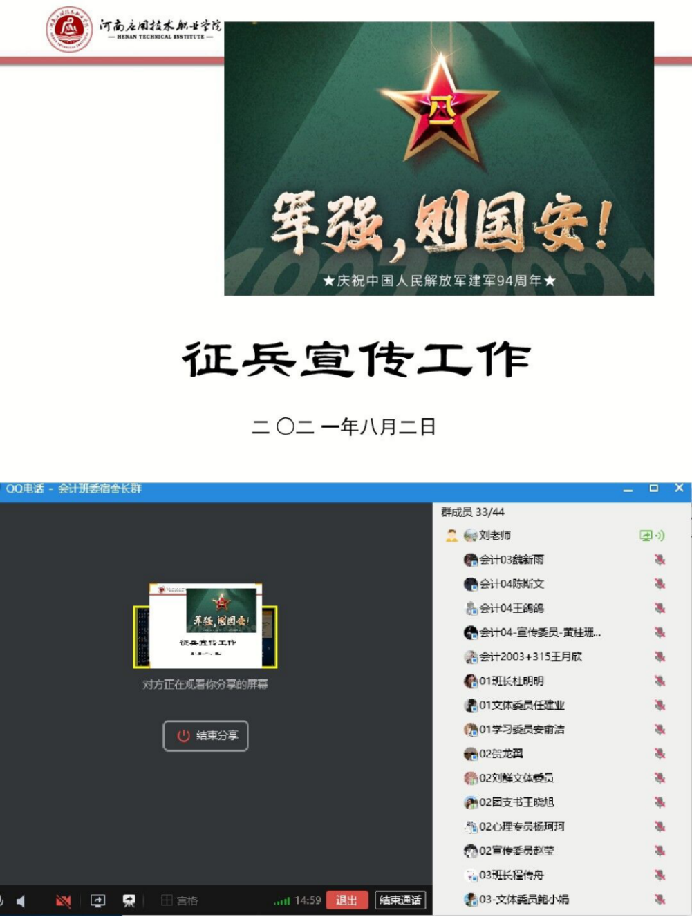 基于当前新冠肺炎疫情形势变化复杂,为进一步落实学校疫情防控工作要求,持续加强大学生思想政治教育,帮助同学们顺利度过一个充实、愉快、安全的假期,精选反差婊女神在线19级、20级全体班主任、辅导员于8月1日、2日两天,组织各班召开了线上疫情防控暨征兵宣传主题班会。