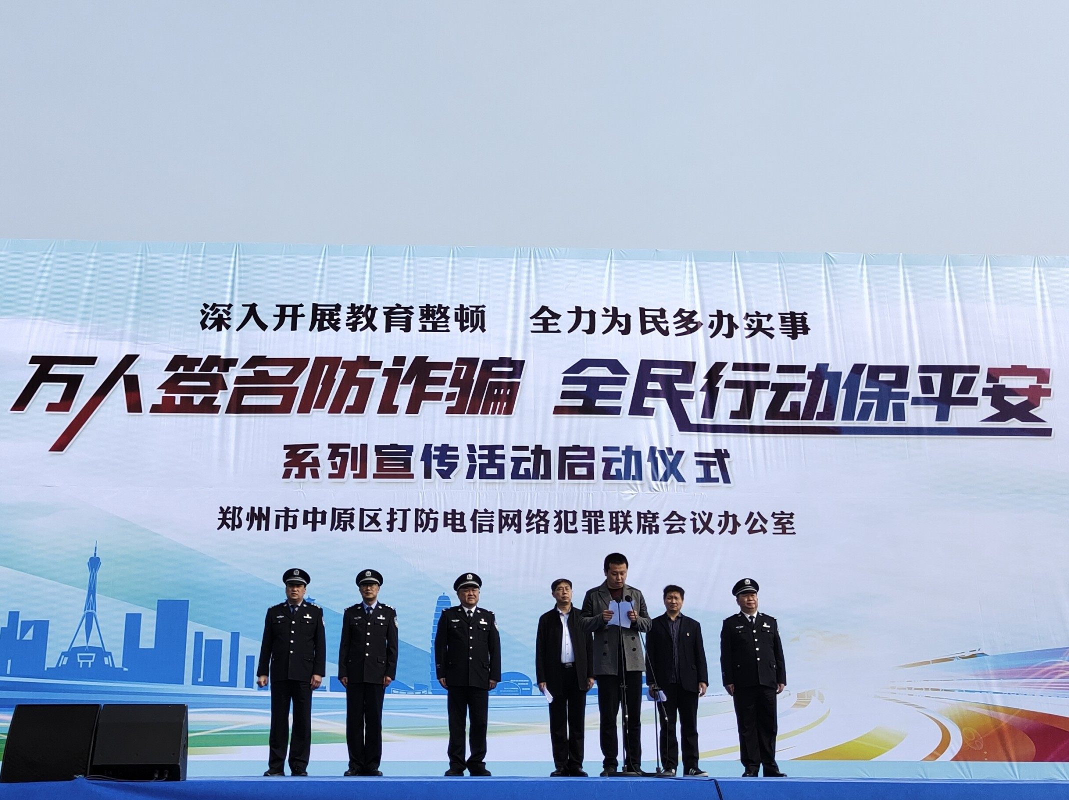 为进一步提高我校学生对电信网络诈骗犯罪的认知,增强防范电信网络诈骗犯罪的能力,形成强大的打击电信网络诈骗犯罪的力量,更好地保护广大学生的财产安全。3月27日上午,在校团委的统一安排下,我院组织部分师生前往郑州市奥体中心,参加“万人签名防诈骗,全民行动保平安”系列宣传活动启动仪式。