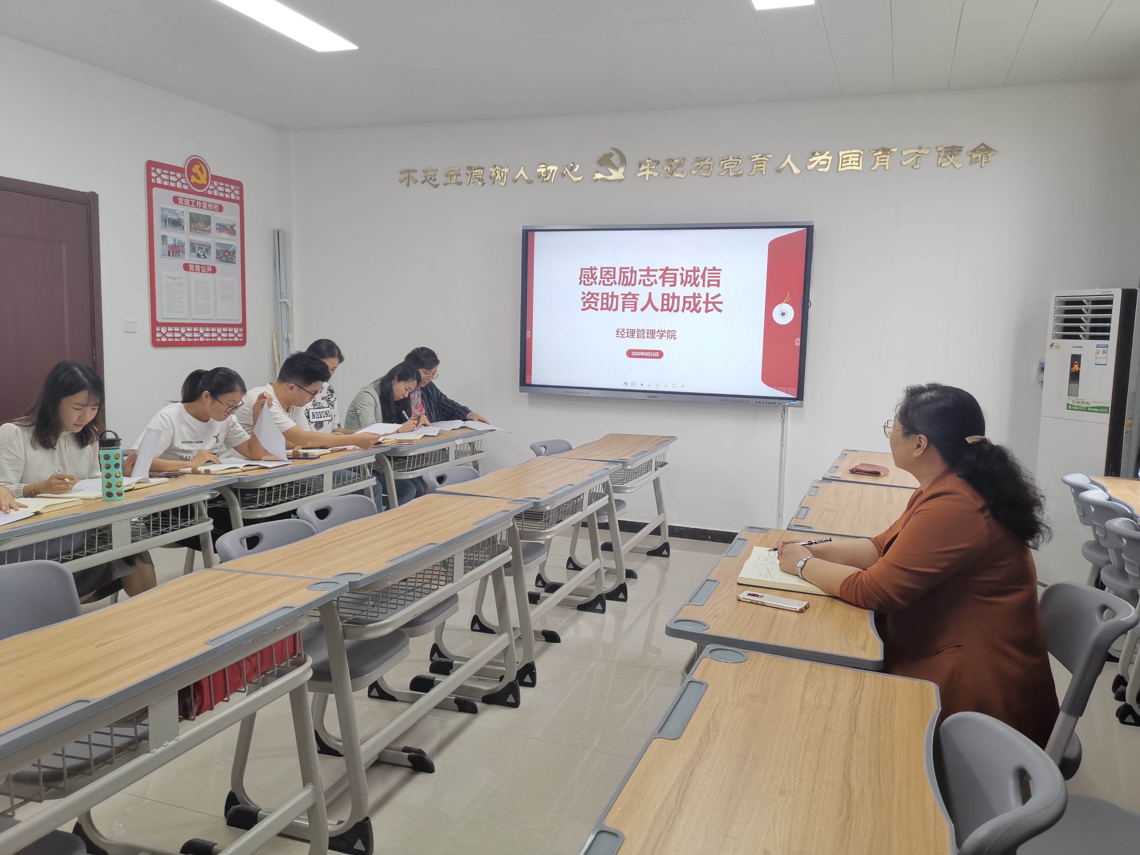 李书记指出资助工作是一项长期系统而艰巨的任务,是构建和谐校园、促进贫困学生健康成长的有效保证,学院要及时更新贫困生家庭家庭信息档案库;立足班级,公平公正公开评定资助对象;注重宣传,提高认识,推动学院的资助工作。一是做好助学贷款工作;二是做好家庭经济困难学生身份认定工作;三是做好国家奖学金、国家励志奖学金、国家助学金的评定工作;她最后强调, 往年我院的资助工作机制完善,但资助工作目前还存在一些问题。学院以后要继续加大宣传力度,将学校相关资助政策深入宣传到每位贫困生,开展形式多样的活动引导学生感恩、诚信。利用毕业生离校阶段,通过班会形式集中学习资助政策,督促助学贷款同学诚信还贷,大力倡导感恩教育,将诚信感恩深入每位学生之中。