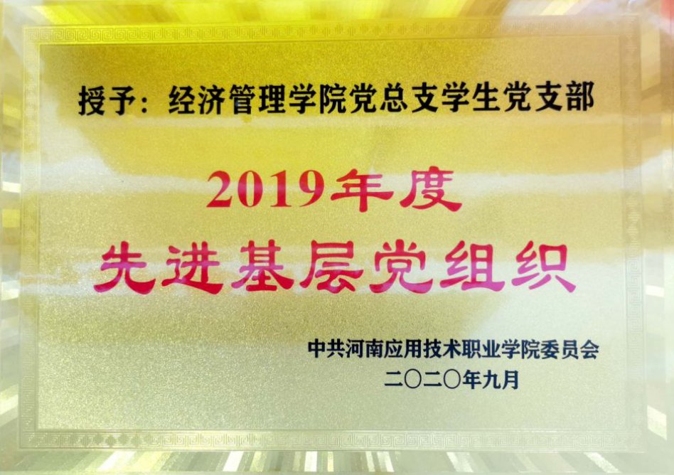 近日,根据《中共河南应用技术职业学院委员会关于表彰2019年度先进基层党组织、优秀共产党员和优秀党务工作者的决定》,我院学生党支部荣获“先进基层党组织”。