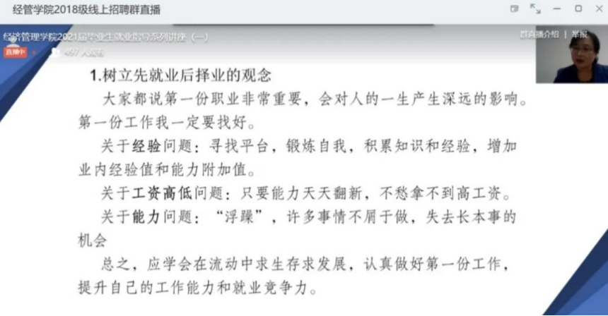 面对2020年这个特殊的毕业季和就业季,精选反差婊女神在线就业服务“不打烊”。学院开展“战胜疫情‘职’击未来”就业指导网络直播讲座,为即将毕业的2020届和即将预就业的2021届经管学院毕业生和学生家长们进行了一场全面、深入的就业指导。