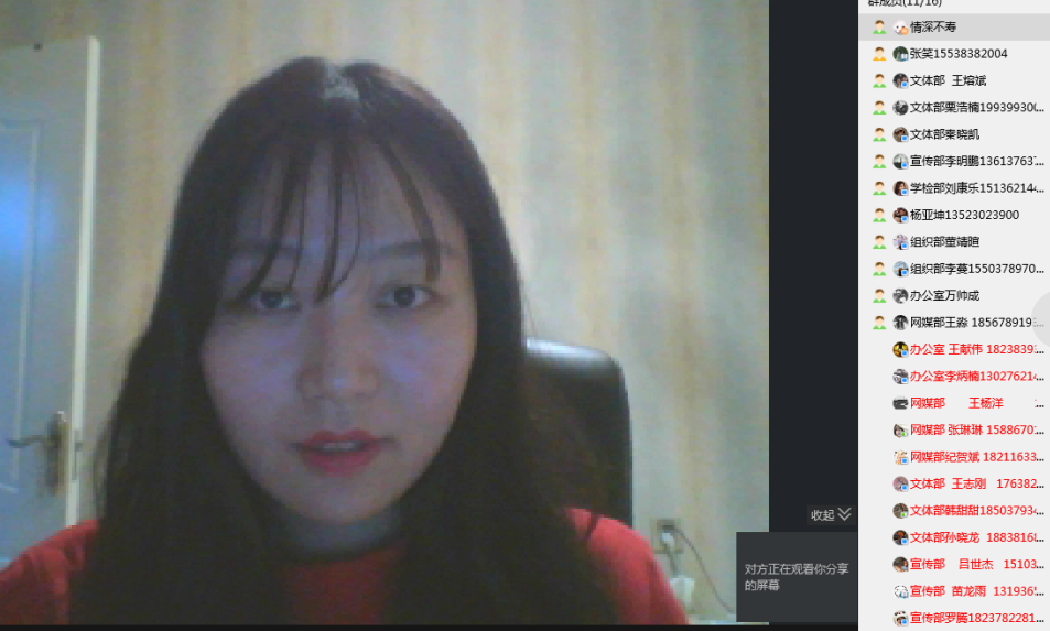 关于疫情防控,聂老师要求各位学生干部充分发挥头雁作用,在各个方面都要起到引领表率,对于疫情不传谣、不信谣、不造谣,对于热点事件,配合学院做好正面舆论的引导。关于学风督导,聂老师要求各位学生干部充分发挥组织协调作用,严格遵守学校“线上教学”的课堂纪律和要求,保证各门课程线上教学的正常开展;关于学生活动,聂老师指出疫情非常时期是对我院学生工作的一个考验,更是我们改进工作的磨刀石,要通过这个时期的工作来检视我们这支团学队伍能不能在关键时期站得稳、打得响、有创新、有特色。