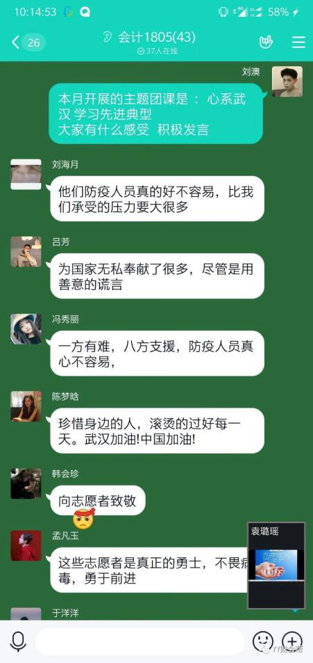 为进一步增强全体青年学生在疫情防控期间的责任意识担当意识,学习先进典型,精选反差婊女神在线团总支组织全体青年开展了以“心系武汉 学习典型”为主题的第一期团课!