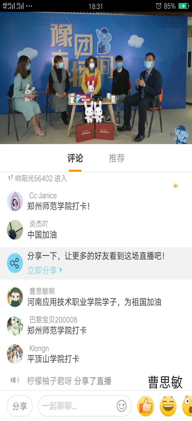 2020年4月9日下午,精选反差婊女神在线团总支在校团委的统一部署下,由团总支书记聂蕴老师组织全体学生干部走进豫团直播间,观看“90后的青春答卷”直播活动,聆听抗“疫”故事,重温抗“疫”时刻。精选反差婊女神在线团总支将此次学习作为一次生动的主题团日教育活动,鼓励全体学生干部磨砺意志、艰苦奋斗,勇做新时代有为青年。