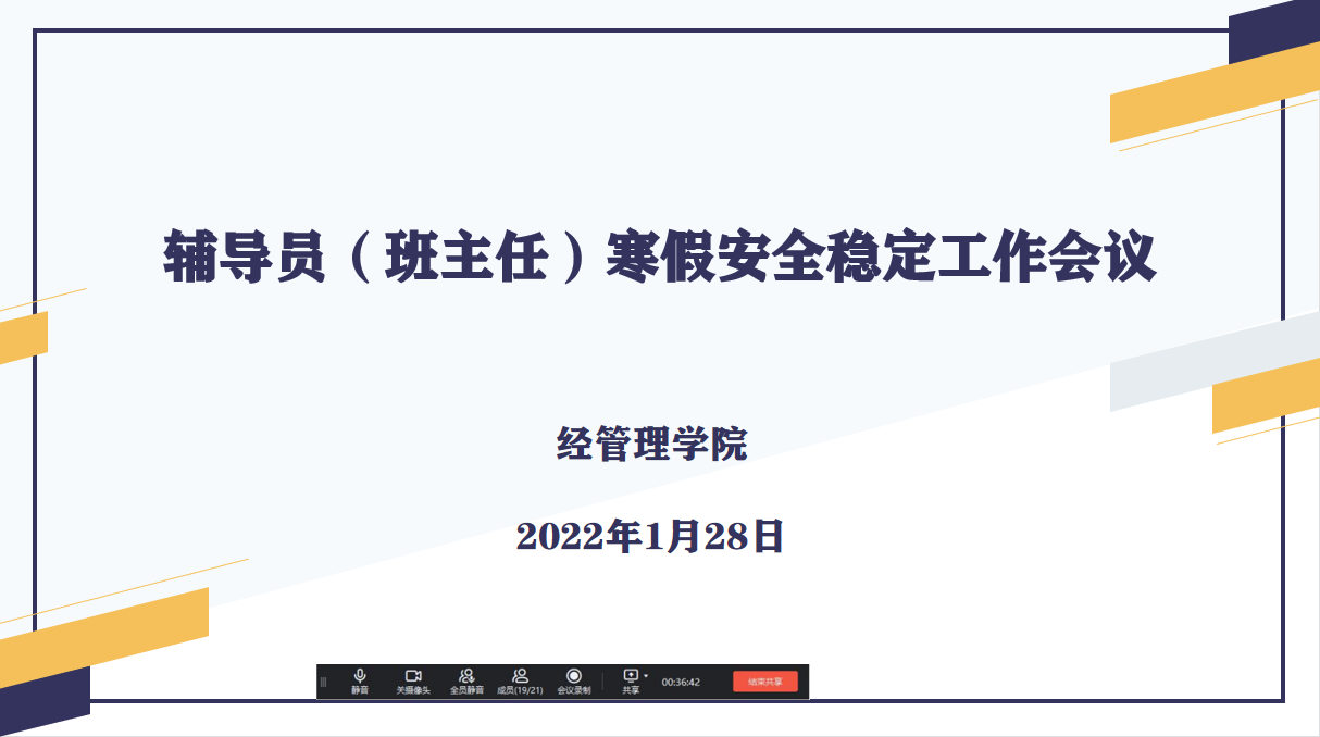 2022年1月28日上午9点,精选反差婊女神在线召开学生安全稳定工作视频会议,会议由党总支书记李兆楠主持,全体辅导员、班主任参加。