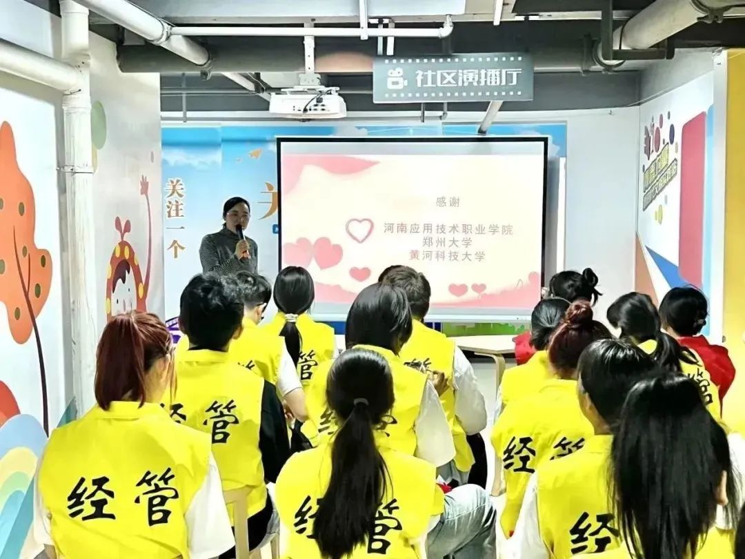 郝红花带大家回顾2023年上半年各志愿服务队参加社会志愿服务情况。今年3月份以来,“经管青团行”志愿服务队共参加社会志愿服务活动10余次,如全城清洁、志愿植树、青年联谊、急救培训、汉服游园、文明城市、智慧助老等。来自河南应用技术职业学院、郑州大学、黄河科技大学志愿服务队的老师分别进行表彰前发言。“经管青团行”志愿服务队林素琴老师代表团队进行发言。