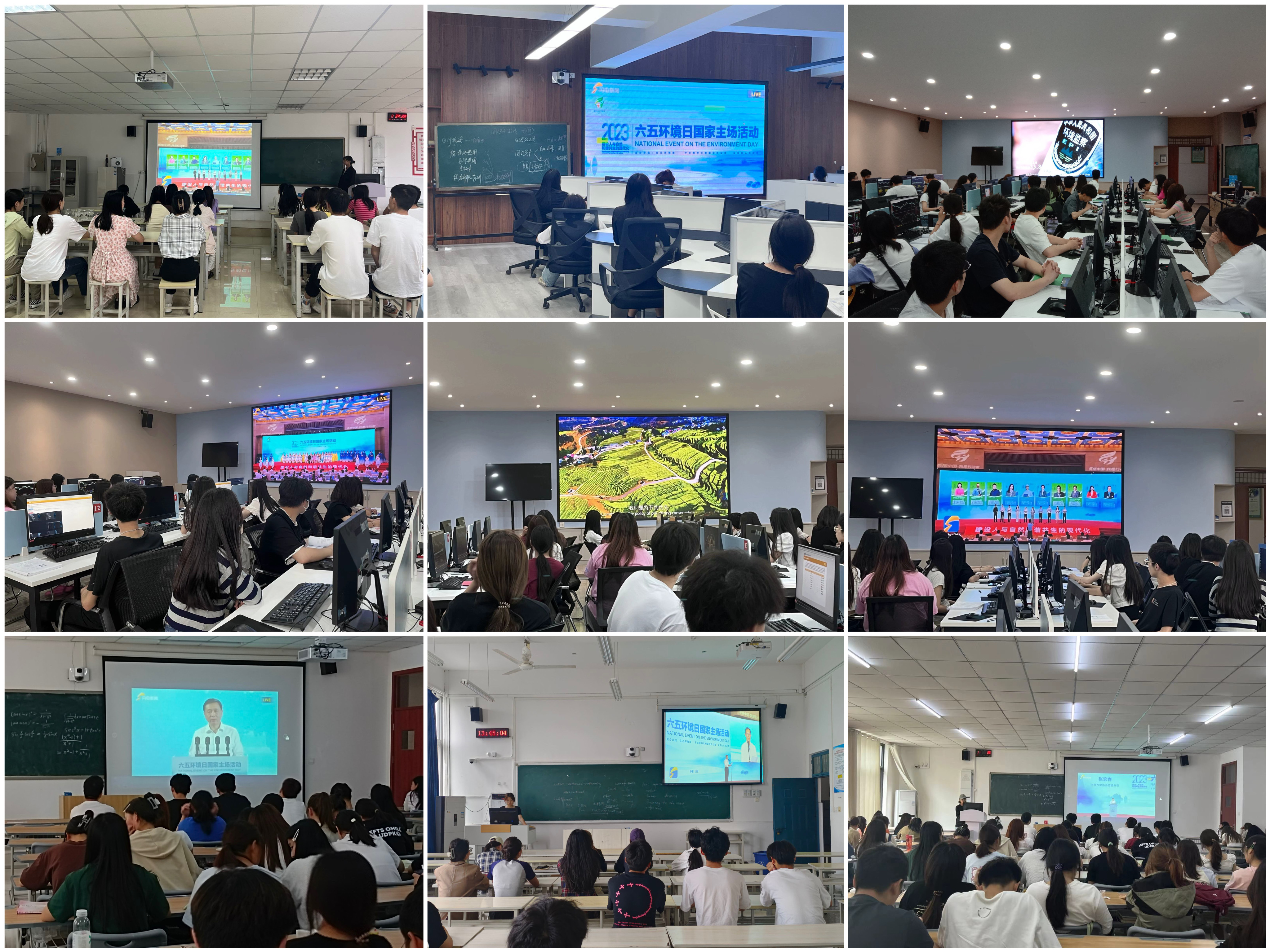 活动分为两个阶段,第一阶段是理论学习。6月5日,我校师生以团支部为单位,共同观看了“六五环境日国家主场活动”直播,了解2023年度“美丽中国,我是行动者”提升公民生态文明意识行动计划先进典型故事,引导广大青年团员把尊重自然、顺应自然、保护自然的生态文明理念入脑入心。