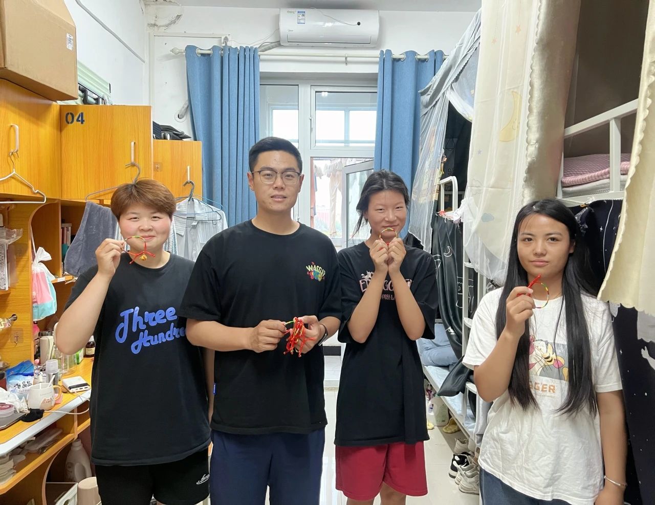 走访慰问期间,赵志浩老师为留校学生送上了准备的鸭蛋、五彩红绳、香囊等带着节日氛围的小礼物,表达了端午安康的节日祝福,让学生们在留校期间也能感受到节日的氛围和来自老师的挂念。在走访过程中,赵老师还详细询问大家近期生活学习情况和假期安排,叮嘱同学们假期期间注意个人财物安全、用电安全、消防安全、防范电信诈骗等,提升安全防范意识,并服从学校假期相关管理规定。