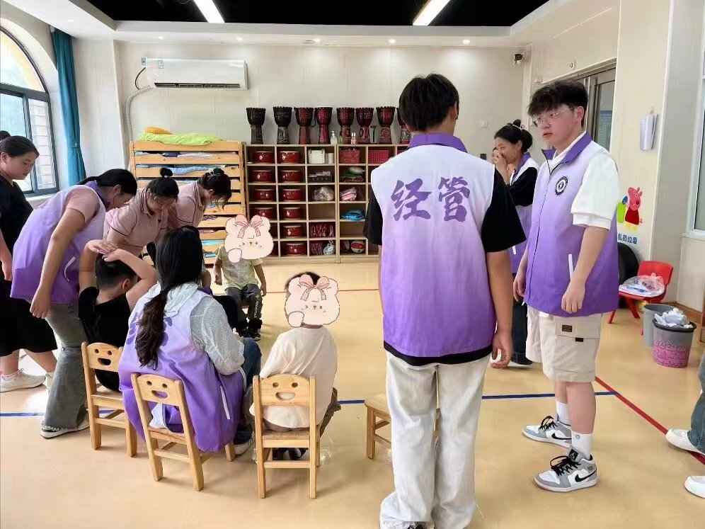 在许昌博爱儿童发展中心,“小脚印”志愿服务队开展“与爱‘童’行 点亮未来”主题活动。活动前,发展中心负责人讲述志愿守则及特殊儿童情况。之后,同学们与小朋友们一起做黏土作品、做漆扇,一起玩“丢手绢”游戏。在欢声笑语中,“小脚印”志愿服务队继续弘扬奉献、友爱、互助、进步的志愿精神,传递爱的接力棒,守护美好心灵。
