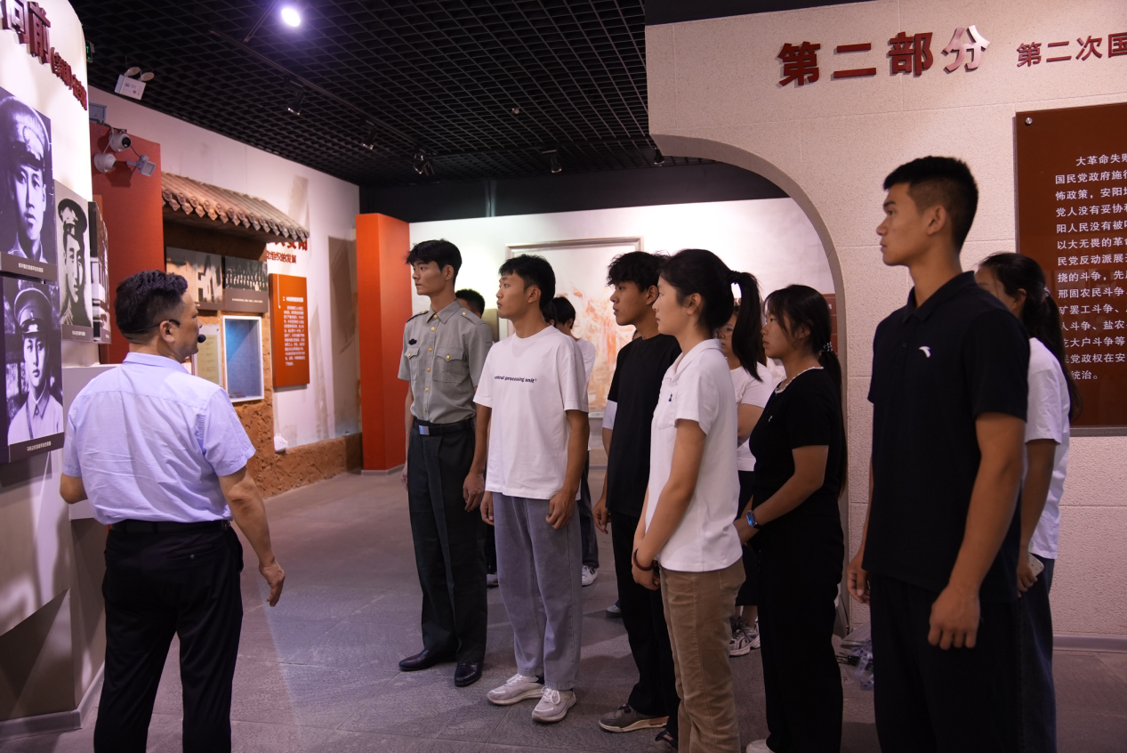 步入陵园,巍峨的革命烈士纪念碑肃然矗立,其19.49米的高度与抽象融合“5”“6”的碑体设计,无声诉说着“枪杆子里面出政权”的真理与烈士精神永耀日月的主题。在讲解员引导下,师生们步入安阳革命史纪念馆。讲解员用生动的语言,讲述馆内的五大主题:早期共产党人的光辉足迹、抗日战争时期的艰苦斗争、解放战争胜利前夕、社会主义建设探索之路、英雄模范人物事迹。一张张斑驳照片、一件件承载血火的遗物,将那段峥嵘岁月重现在同学们眼前。在庄严肃穆的烈士墓区,大家俯身轻抚墓碑,为安眠于此的465位英烈(含96位豫北战役无名烈士)拂去尘埃,敬献鲜花,以行动表达最深切的缅怀与景仰。