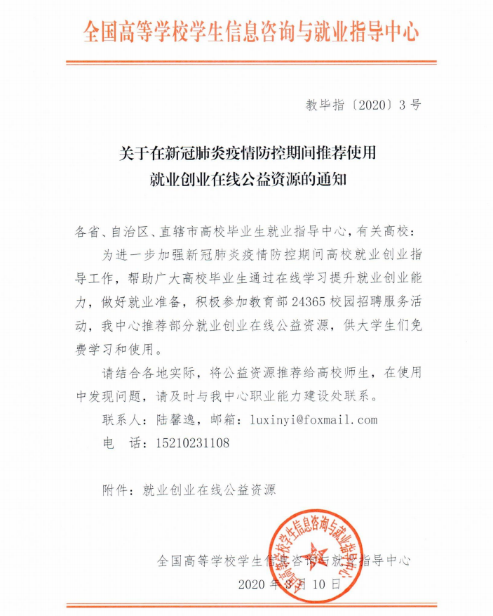 关于在新冠肺炎疫情防控期间推荐使用就业创业在线公益资源的通知