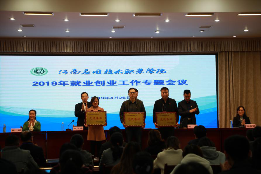 4月26日下午,我校在实训中心二楼会议室召开2019年就业创业工作专题会议,学校党委书记秦书君,校长姚勇,各相关部门负责人及全体专兼职辅导员参加会议。会上,副校长赵玉奇宣读了《关于表彰2018年就业创业工作先进集体、先进个人的决定》,校领导为受表彰集体及个人进行了颁奖。我院就业工作表现突出荣获先进集体,李兆楠书记代表经管学院上台进行交流发言,张召哲院长代表经管学院上台领奖。