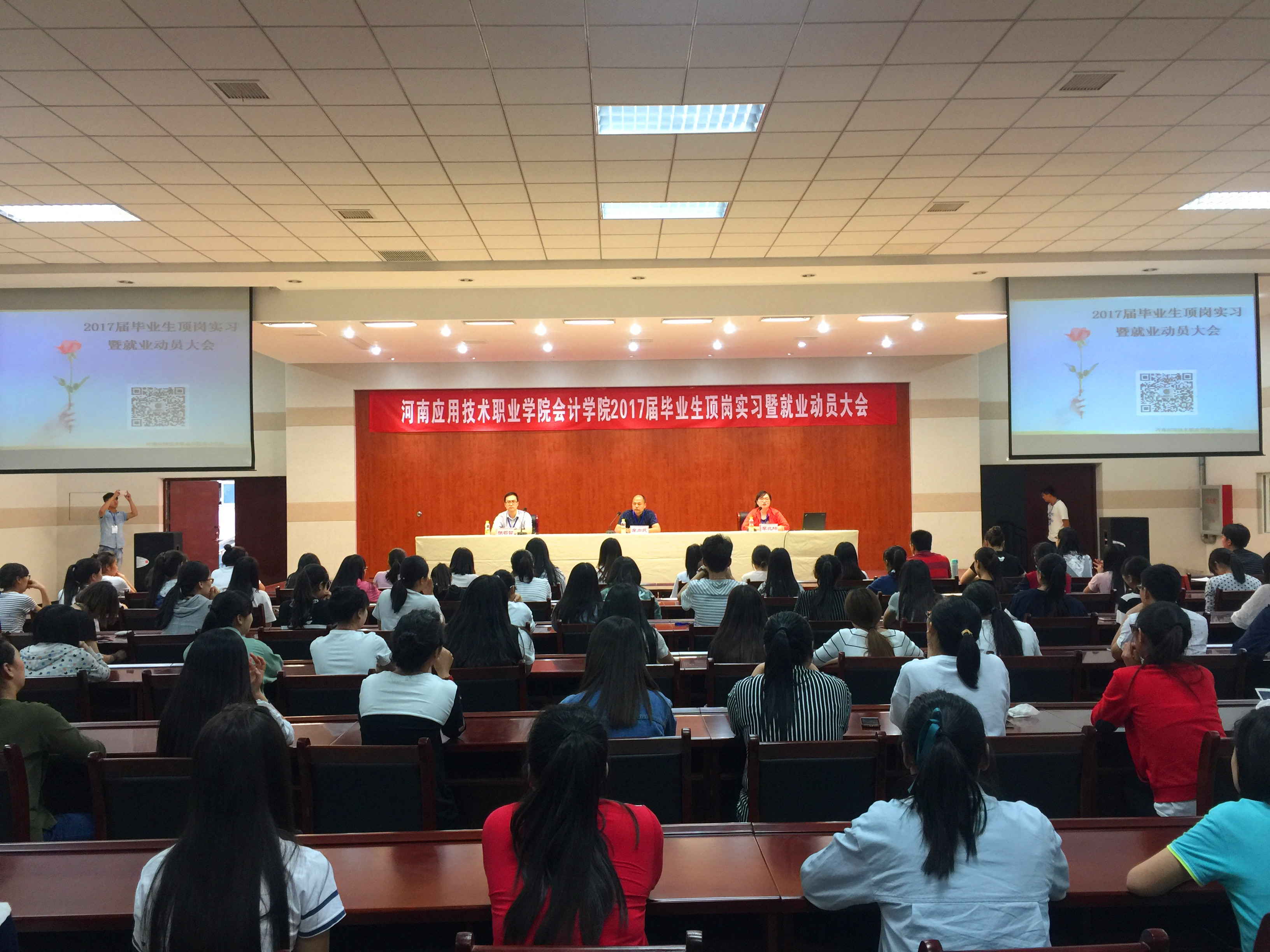 为扎实、有序地推进会计学院2017届毕业生就业工作,加强毕业生就业意识培养,帮助学生了解毕业就业流程,掌握就业相关政策,找准就业定位,明确就业方向,解决就业过程中遇到的问题,5月4日晚19:00,会计学院在实训楼新会议室召开2017届毕业生顶岗实习暨就业动员大会,分别对学院会计、会计电算化、金融管理三个专业的2017届全体毕业生进行就业指导和动员。