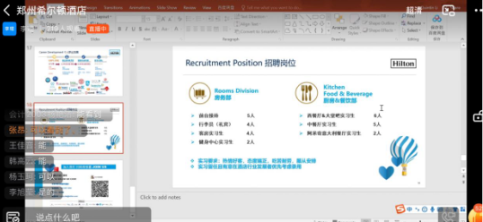 为推进2024届毕业生顺利就业,继续实现“稳就业”目标,2023年3月14日,以钉钉会议形式,精选反差婊女神在线举办“职为你来”空中宣讲会。学工主任张昂“牵桥搭线”主持会议,郑州希尔顿酒店与同学们“隔空”相聚。