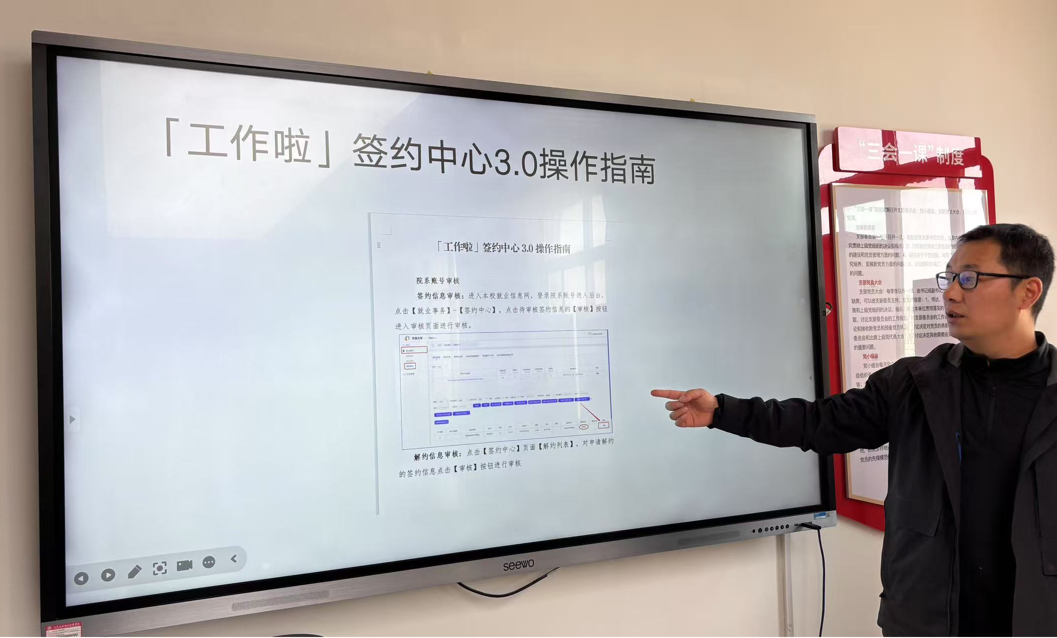会议伊始,张昂对2025年最新就业政策向大家进行了解读,详细分析教育部就业统计指标新规,强调“四不准”纪律要求,明确就业协议审核、灵活就业认定等规范。之后,现场演示了全国高校毕业生就业管理系统填报流程,重点讲解升学、自主创业、自由职业等特殊就业形式的佐证材料上传标准,指明应不断完善“院系-班级-学生”三级核查机制,要求对签约单位信息、离职换岗情况实行动态追踪。