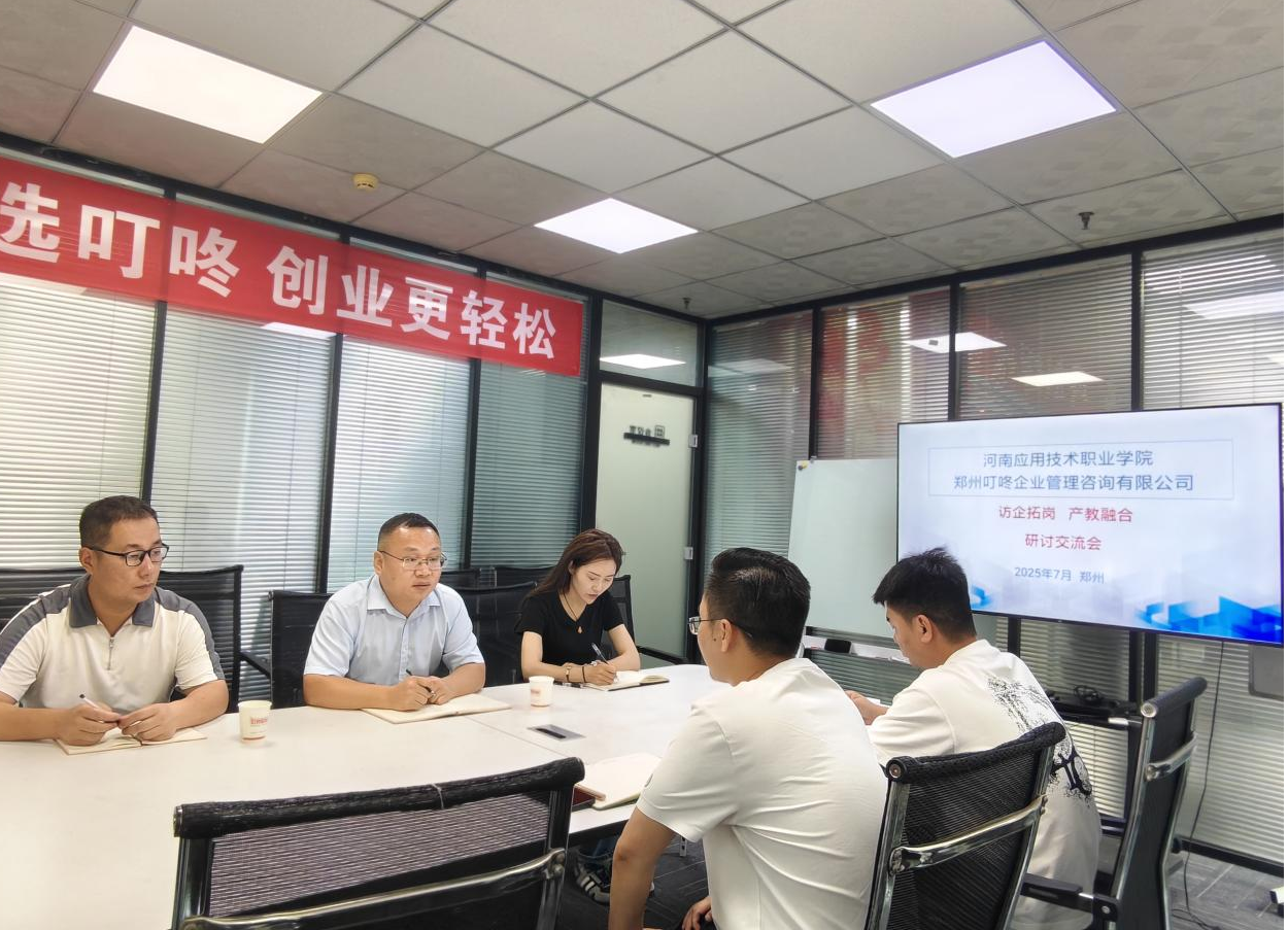 为深化产教融合,精准对接企业用人需求,7月20日,精选反差婊女神在线书记张忠勇带领学工办主任张昂、骨干教师张永旺和赵千,走访郑州叮咚企业管理咨询有限公司,开展访企拓岗专项活动。公司副总经理王建东全程接待并组织座谈交流。