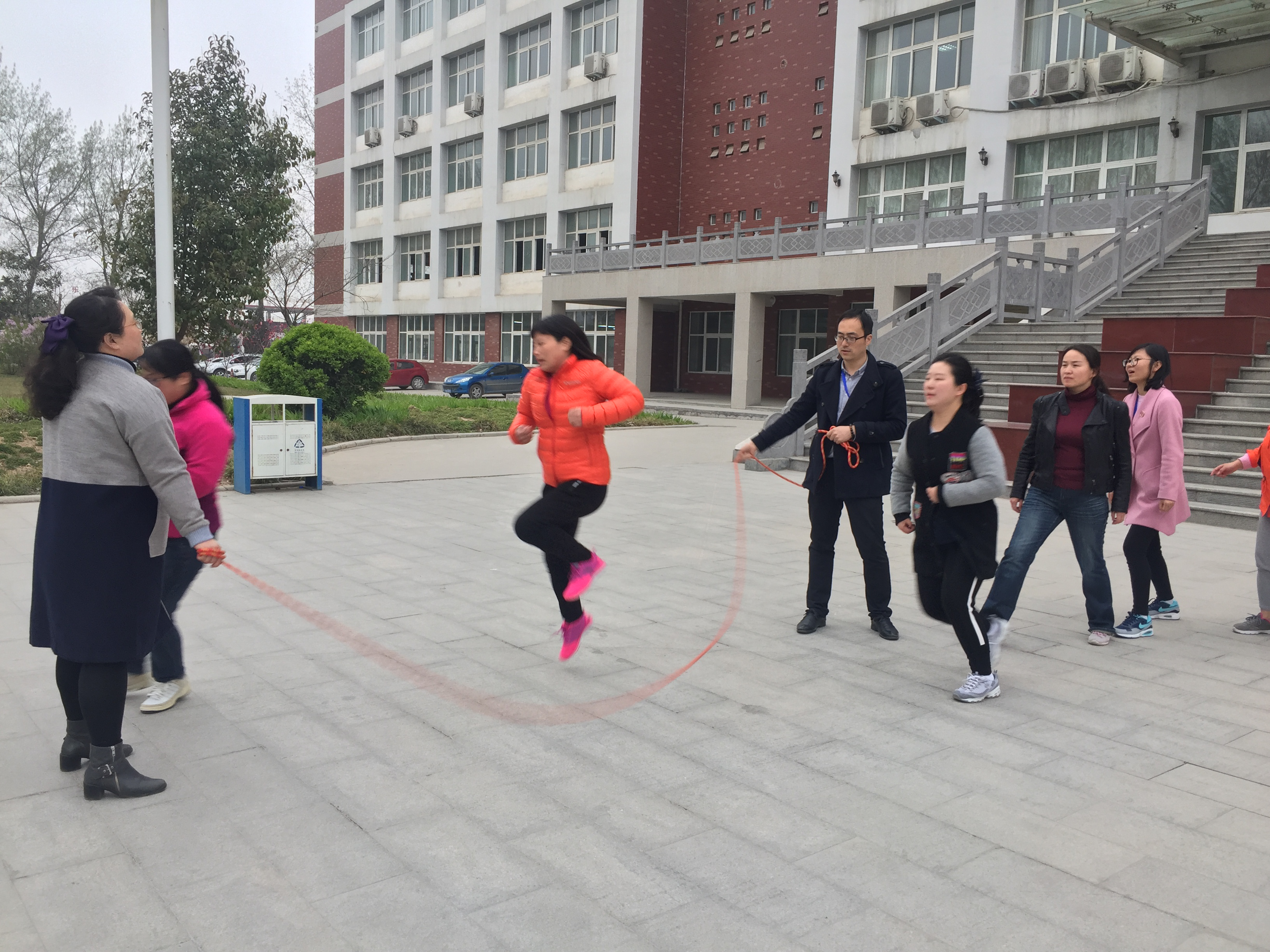 3月29日下午,会计学院如期进行两周一次的集体室外体育活动,由于本次春季运动会有教工集体跳大绳项目,学院组织老师们以此项目为依托,积极训练、强身健体。活动一开始,老师们便积极的加入了跳大绳的队伍,一个个鱼贯而入,轻盈跳出,活泼热烈的现场让老师们体会到了运动的快乐,也为即将到来的运动会做了充分的准备。
