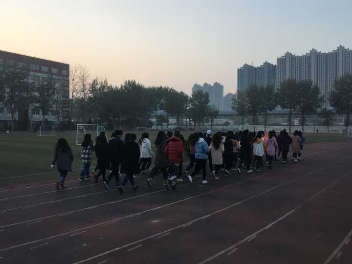 晨曦初露,初阳映着学生们青春的脸庞。早上7点10分,同学们准时在学院操场集合,天气微凉,依然阻挡不了大家运动的热情。在辅导员的带领和鼓舞下,班级文体委员组织大家整齐列队,同学们精神抖擞、热情高涨。整齐的队伍、一致的步调、响亮的口号,成了每天早晨操场上那一道亮丽的风景线。奔跑的队伍中,同学们相互帮助,互相鼓励,坚持跑完全程。通过晨跑活动,提高了班级集体的凝聚力,为这个寒冷的清晨增添了一份温暖。