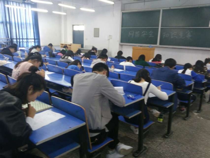 为了提高大学生网络安全防护意识和技能,2016年10月19日12时,河南应用技术职业学院会计学院团总支学生会办公室带领全院参赛人员及学生干部在B教学楼201教室开展了网络安全知识竞赛活动。试卷分为选择、判断和简答三个部分。题目易难交织,均是结合大家日常生活和各类安全知识。答题选手们十分遵守考场纪律,并且各不互相谦让,凭借着平时的知识储备和日常生活中安全知识的积累,以最优的状态积极答题。紧张有序的比赛在不失活跃的氛围中圆满结束。