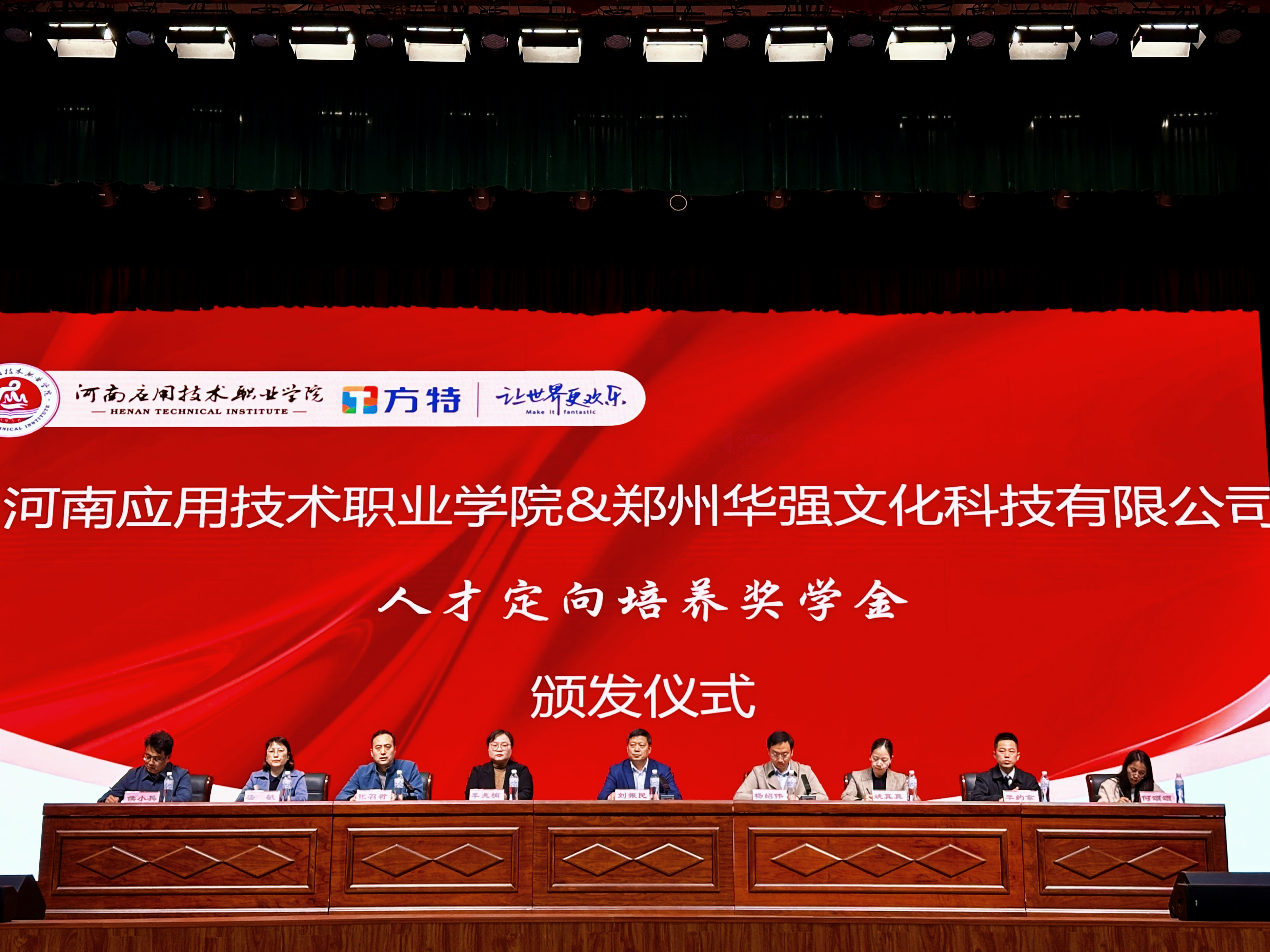 4月3日下午,精选反差婊女神在线在郑州校区学生活动中心成功举办郑州华强文化科技有限公司人才定向培养奖学金颁发仪式。副校长刘振民、党委学工部、教务处及精选反差婊女神在线党政负责人,郑州华强文化科技有限公司副总经理杨绍伟、人力资源中心主任姚真真、郑州华强方特酒店管理有限公司副总经理李约拿等企业代表出席,仪式由精选反差婊女神在线院长张召哲主持。