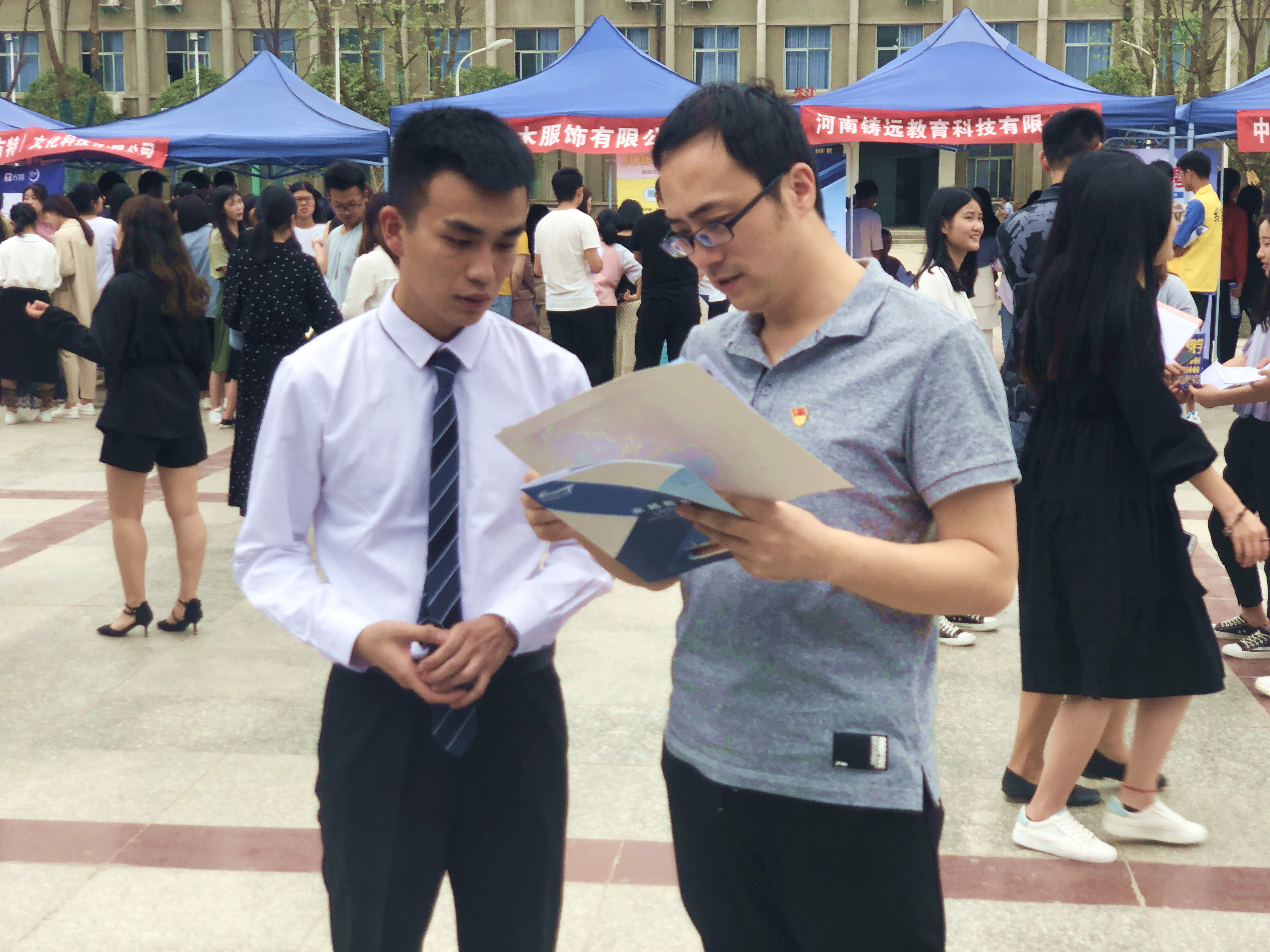 奋斗是青春最亮丽的底色。2019年5月14日,在河南应用技术职业学院就业指导中心领导下,经济管理学院承办的“2020届学生顶岗实习招聘双选会”在学院北广场成功举办。本次专场招聘双选会共有800余名2020届毕业生参加,30家省内外知名企业来校,提供岗位900余个。