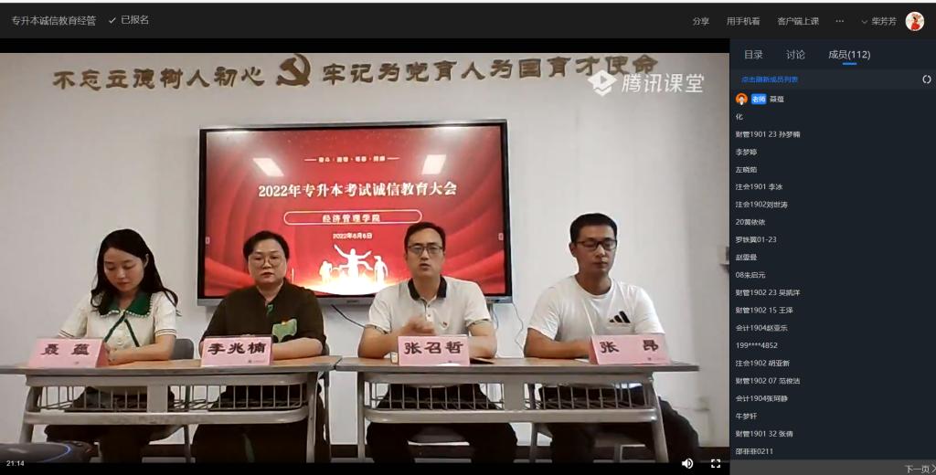 为提高2022年专升本考生诚信意识,培养考生诚信品质,营造诚信、自律、自强校园文化氛围。2022年6月6日下午,通过腾讯课堂,河南应用技术职业学院精选反差婊女神在线召开2022年专升本考试诚信教育大会。会议由团总支书记聂蕴主持,165名专升本考生参加会议,院长张召哲、书记李兆楠、学工办主任张昂出席会议。