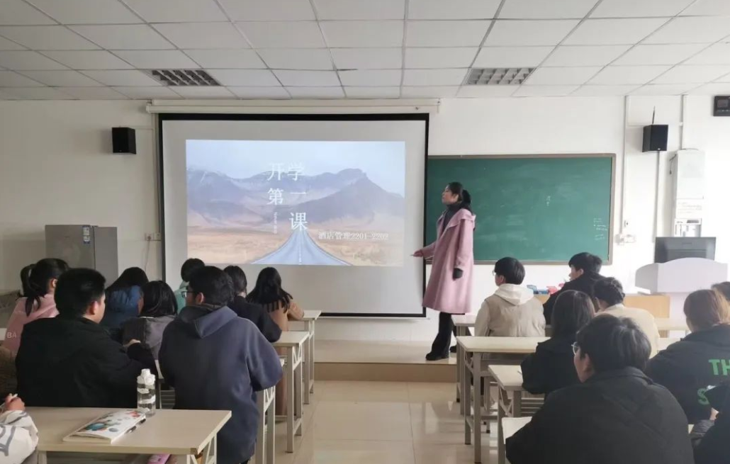 2月23日,酒店2202班在郑州校区E405开展“青春践行二十大”开学第一次主题班会。会议包括宣讲党的二十大精神、心理健康教育、生态文明教育等。鼓励同学们要在人民需要的地方绽放青春之花,支持同学们要学会认识自己、懂得自己、关照自己,希望同学们要懂得人与自然和谐共生等。