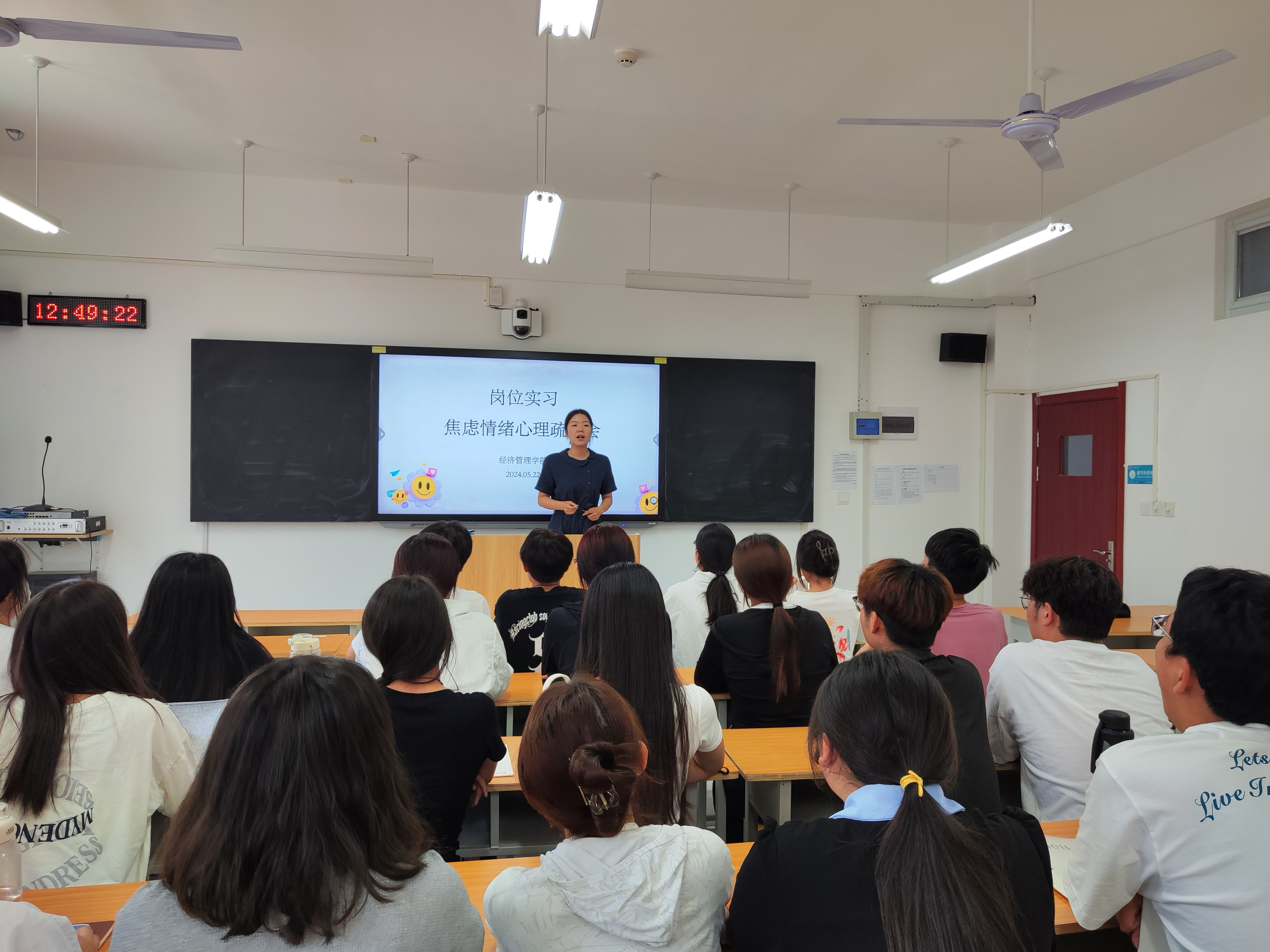 王书记强调,即将走向实习岗位的同学们应重视并正视自己目前的焦虑情绪,积极调整自己的心理状态,以更好地面对和融入今后的实习工作。围绕财会、金融、高星级酒店等专业的就业形势和心理分析及调适三个方面,为同学们讲解了心理角色转变方法、岗前焦虑情绪疏导技巧等在实习过程中应注意的诸多具体心理健康相关问题。