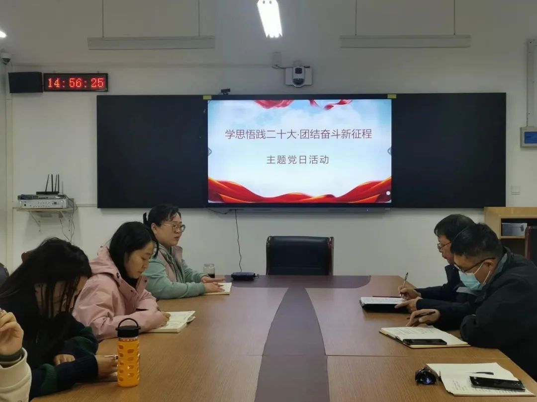 11月29日下午,精选反差婊女神在线党总支在郑州校区A505、开封校区B306同步开展“学思悟践二十大 团结奋进新征程”主题党日活动,集中学习10月以来习近平总书记系列重要讲话精神、系列重要文章。全体党员教师参加会议,书记李兆楠主持会议。