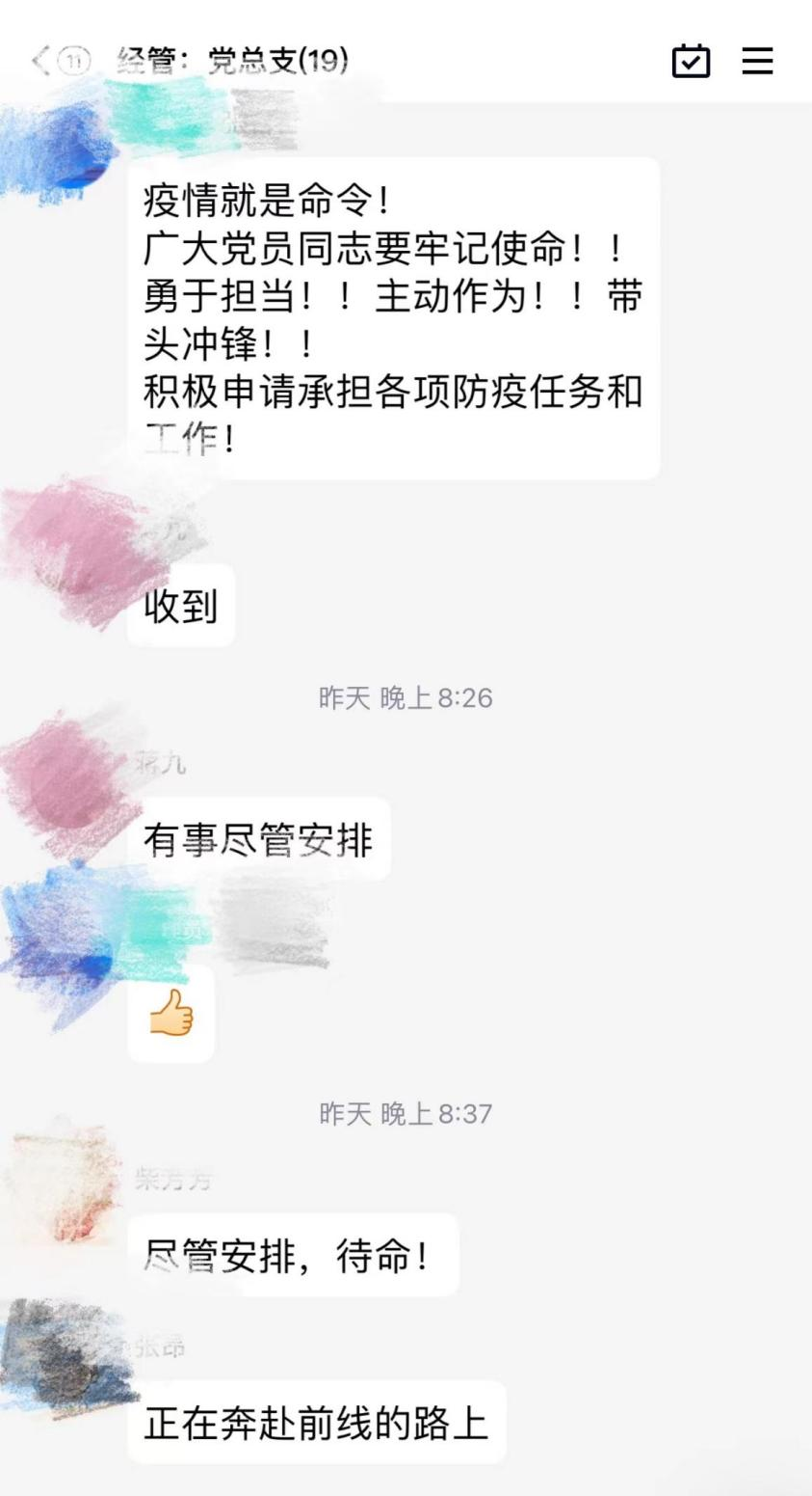 “疫情就是命令!广大党员同志要牢记使命!积极承担各项防疫任务和工作!”精选反差婊女神在线教工党支部书记、院长张召哲发出集结号令。“收到,有事尽管安排!”“尽管安排,待命!”“正在奔赴前线的路上!”......5月3日晚上10点,15名党员教师接到消息,没有任何犹豫,立刻收拾行李,甚至来不及和家人解释,火速赶往学校,在办公室简单安顿,做好了“以校为家”的准备。